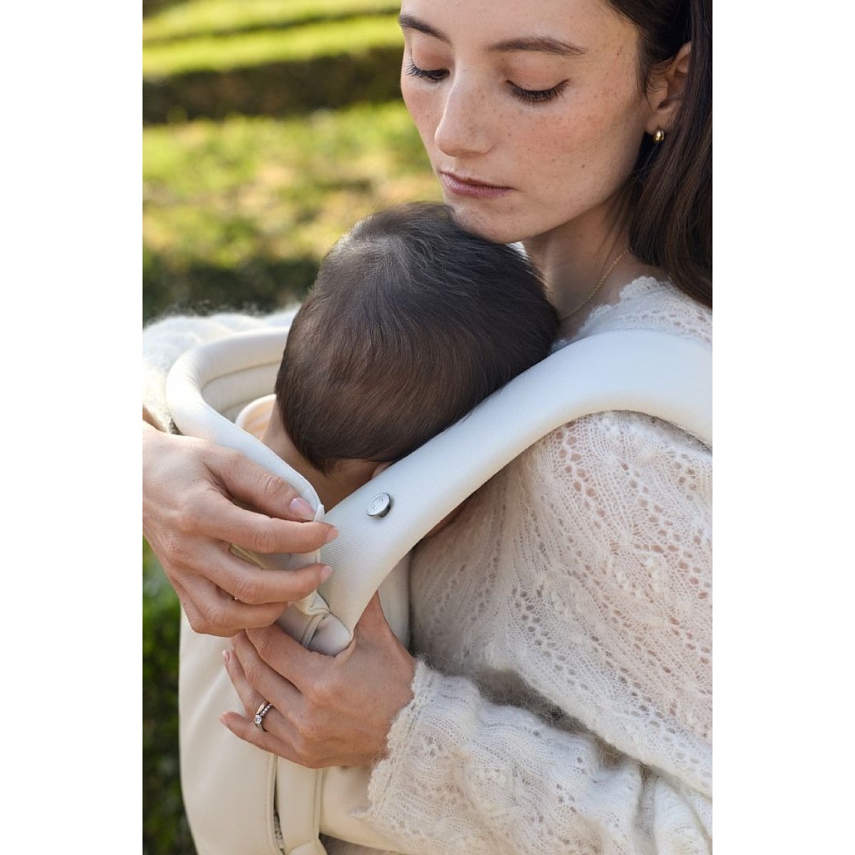 Двухпозиционная поддержка головы обеспечивает необходимую опору для шеи и головы, обеспечивая дополнительный уход, когда малыш находится лицом к вам.