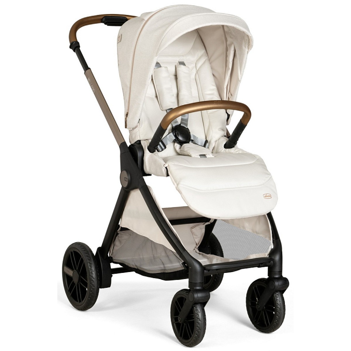 Вся коляска украшена высококачественными деталями: металлическим логотипом Chicco, светоотражающими молниями и вставками из премиальных тканей.