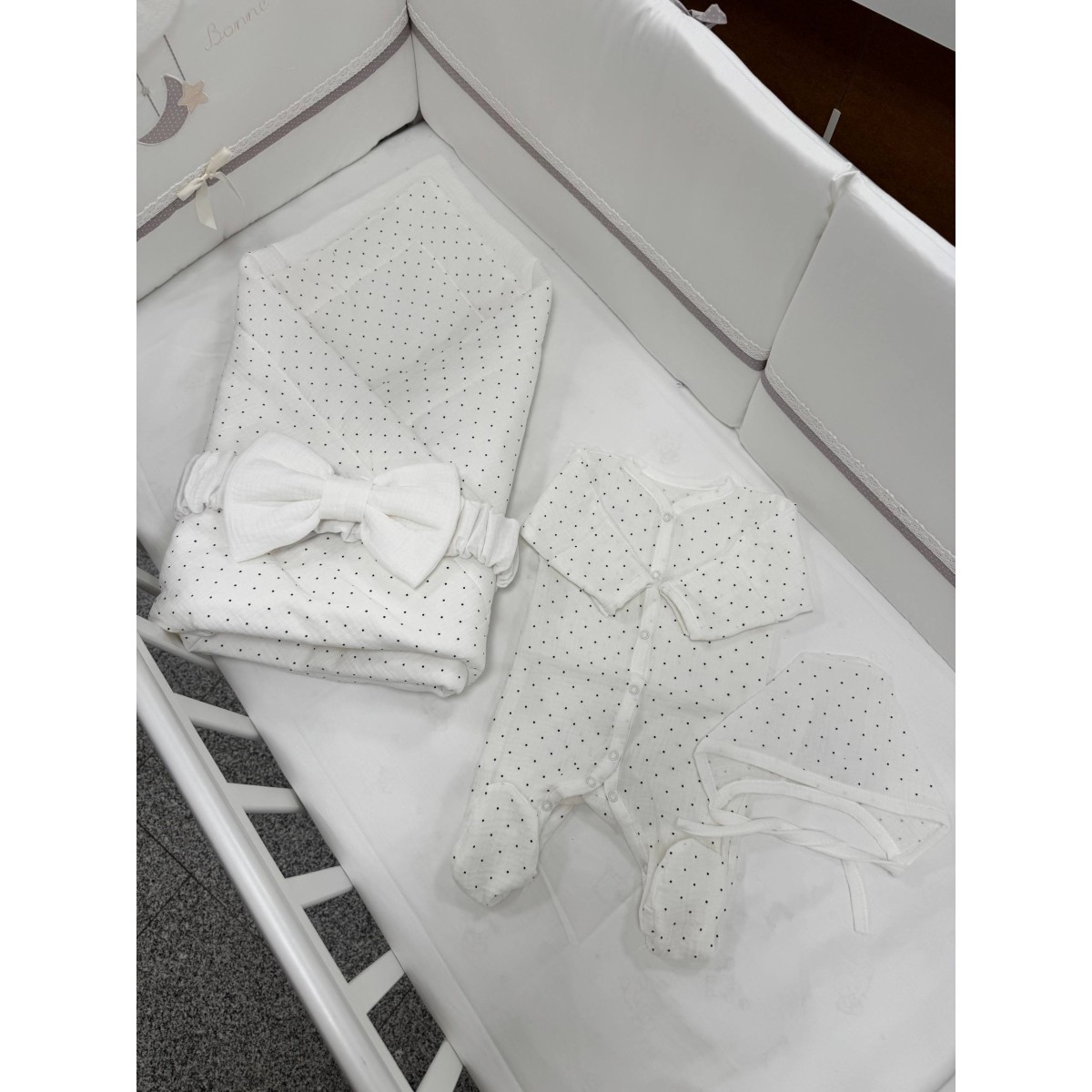 Муслиновый комплект на выписку и прогулки 4 предмета цвет: горошки на молочном 0387