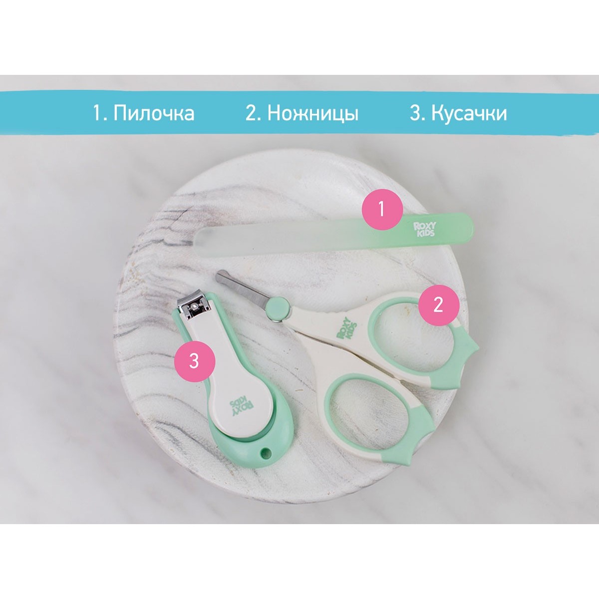 Маникюрный набор для новорожденных и малышей 3в1 от ROXY-KIDS поможет полноценно ухаживать за первыми ноготочками малыша. Закругленные ножницы идеально подходят для мягких и маленьких ногтей малышей, мелкозернистая пилочка устранит неровности ногтя после стрижки, кусачки помогут выполнить аккуратный и ровный срез ногтя. Подстригайте ноготки, когда они отрастают на 1 мм, чтобы малыш себя не поранил.