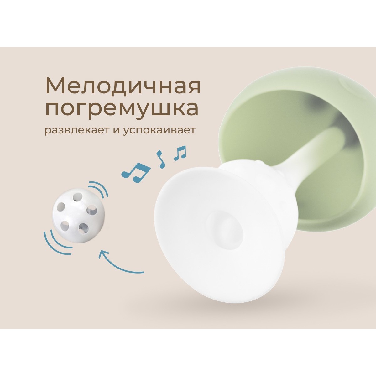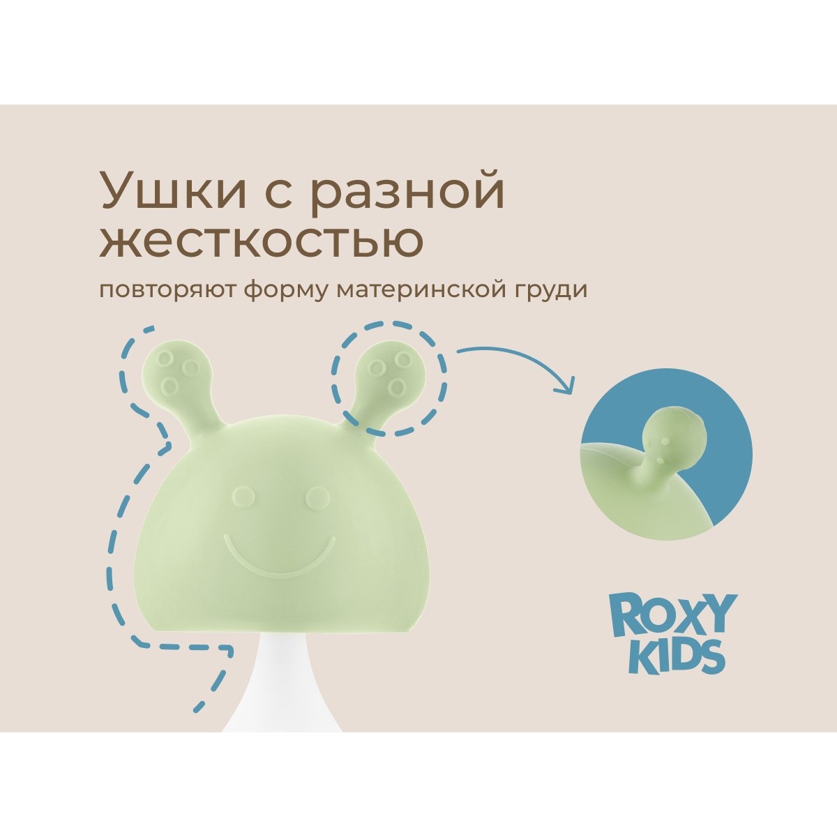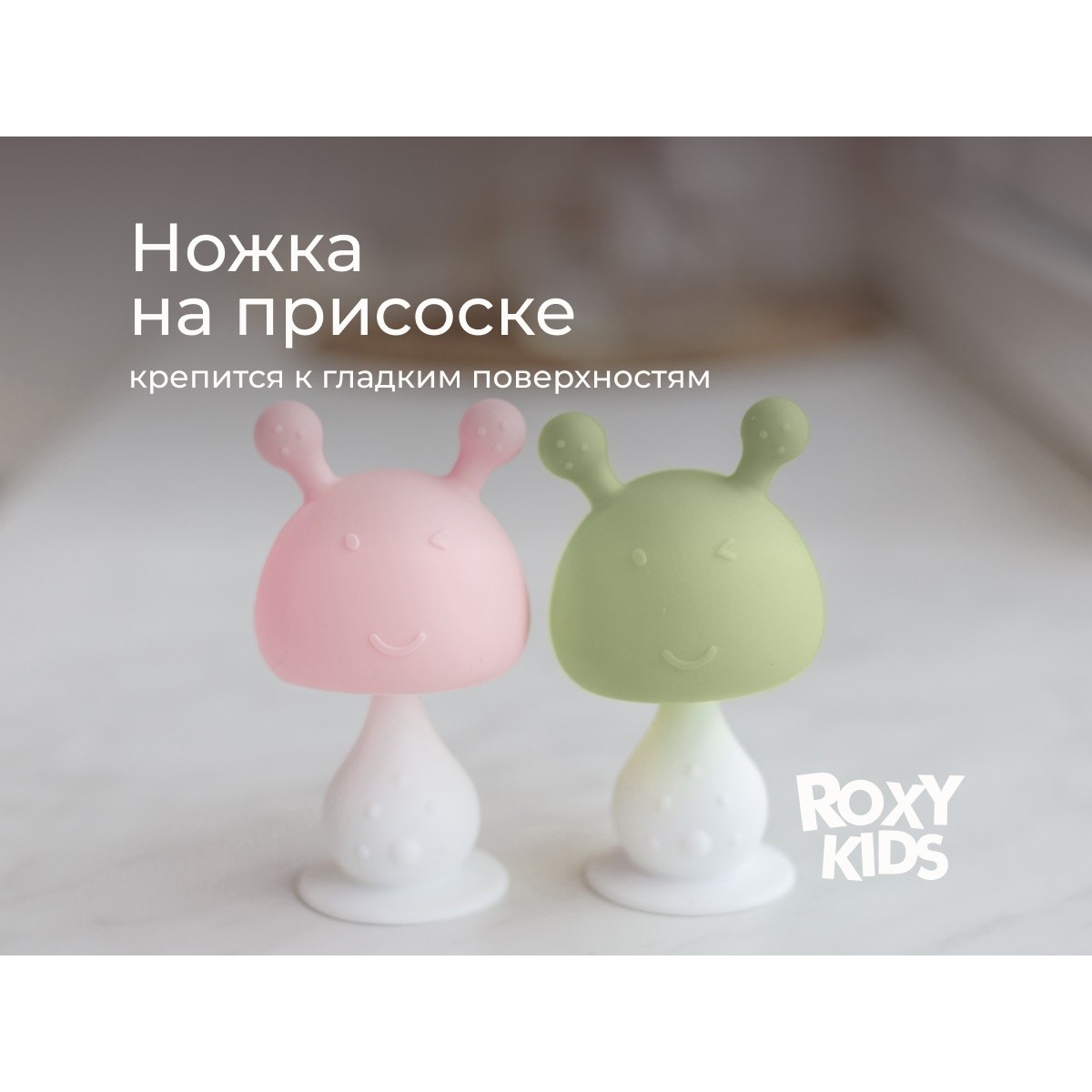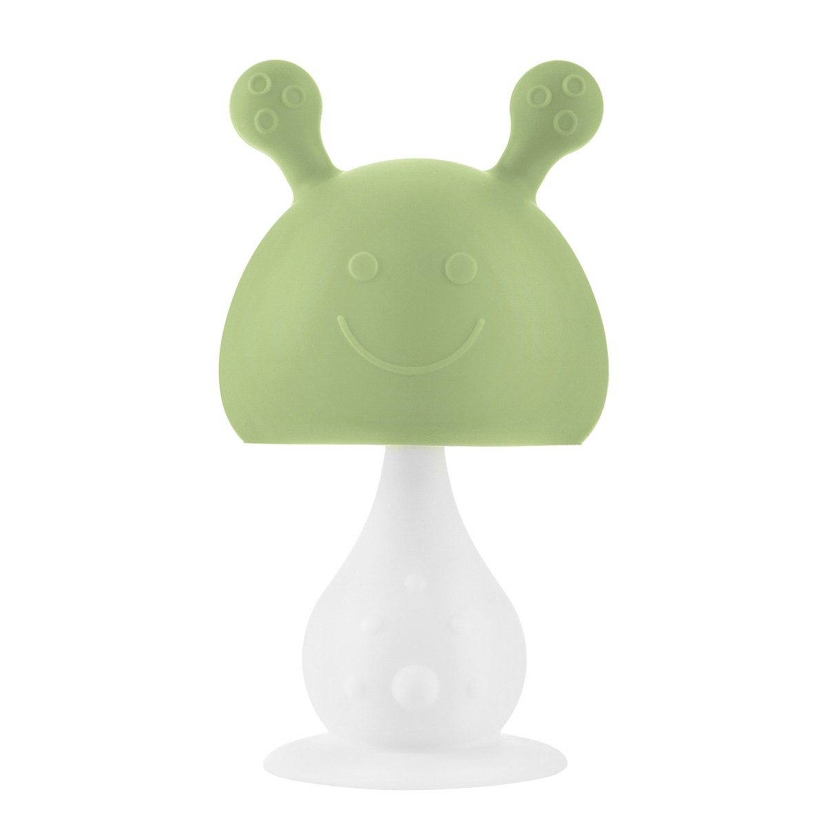 Прорезыватель для зубов MUSHROOM в форме грибочка безопасно массирует десны двумя ушками разной степени жесткости и снимает неприятные ощущения во время прорезывания зубов. Элементы в форме соска напоминают малышу мамину грудь. Кулачок малыша полностью помещается внутри полусферы грибочка. Ребенок крепко держит прорезыватель в кулачке и отучается от сосания пальца. Благодаря анатомической форме прорезыватель подходит для новорожденных и может выполнять функцию соски. Использование прорезывателя успокаивает малыша, развивает координацию и моторику рук, мелодичная погремушка внутри привлекает внимание и развлекает ребенка. С помощью присоски прорезыватель можно установить на столик или детский стульчик. В комплект входит держатель с надежной запатентованной клипсой, поэтому прорезыватель не упадет и не потеряется. Один конец держателя прикрепляется к прорезывателю, а второй при помощи специальной клипсы пристегивается к одежде ребенка. Держатель выполнен из двух слоев полиэстера, прочно сшитых вместе, поэтому он не износится и не порвется.