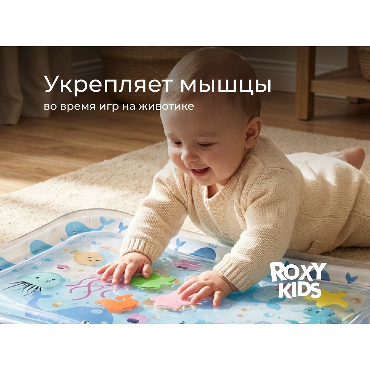 Водный коврик предназначен для развития малышей с первых месяцев жизни. Надувной бортик по краям коврика создает безопасное и уютное место для игр, где ребенок тренирует мелкую моторику и открывает новые сенсорные ощущения.
