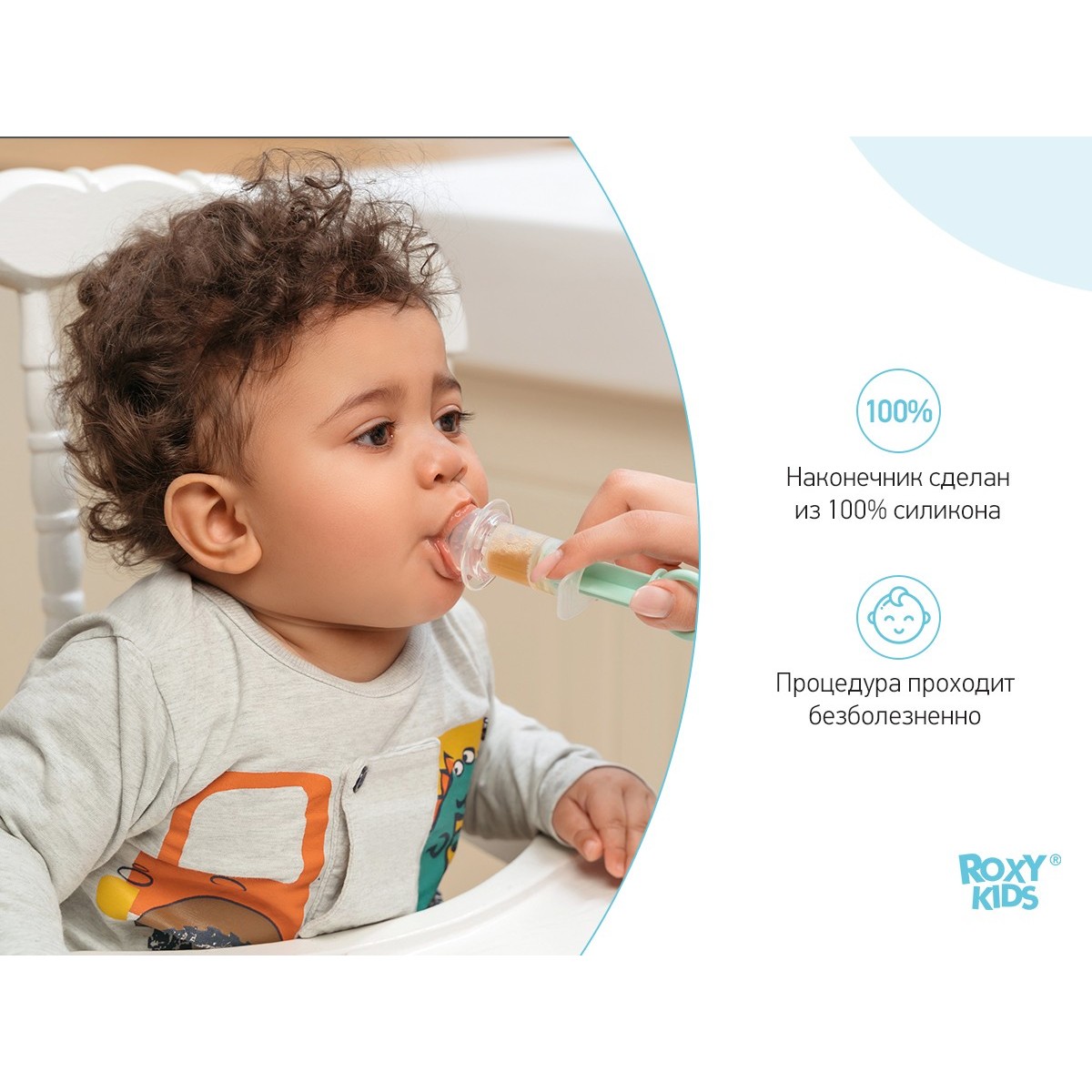 Содержимое можно аккуратно ввести, пока ребенок будет увлеченно жевать силиконовый наконечник.