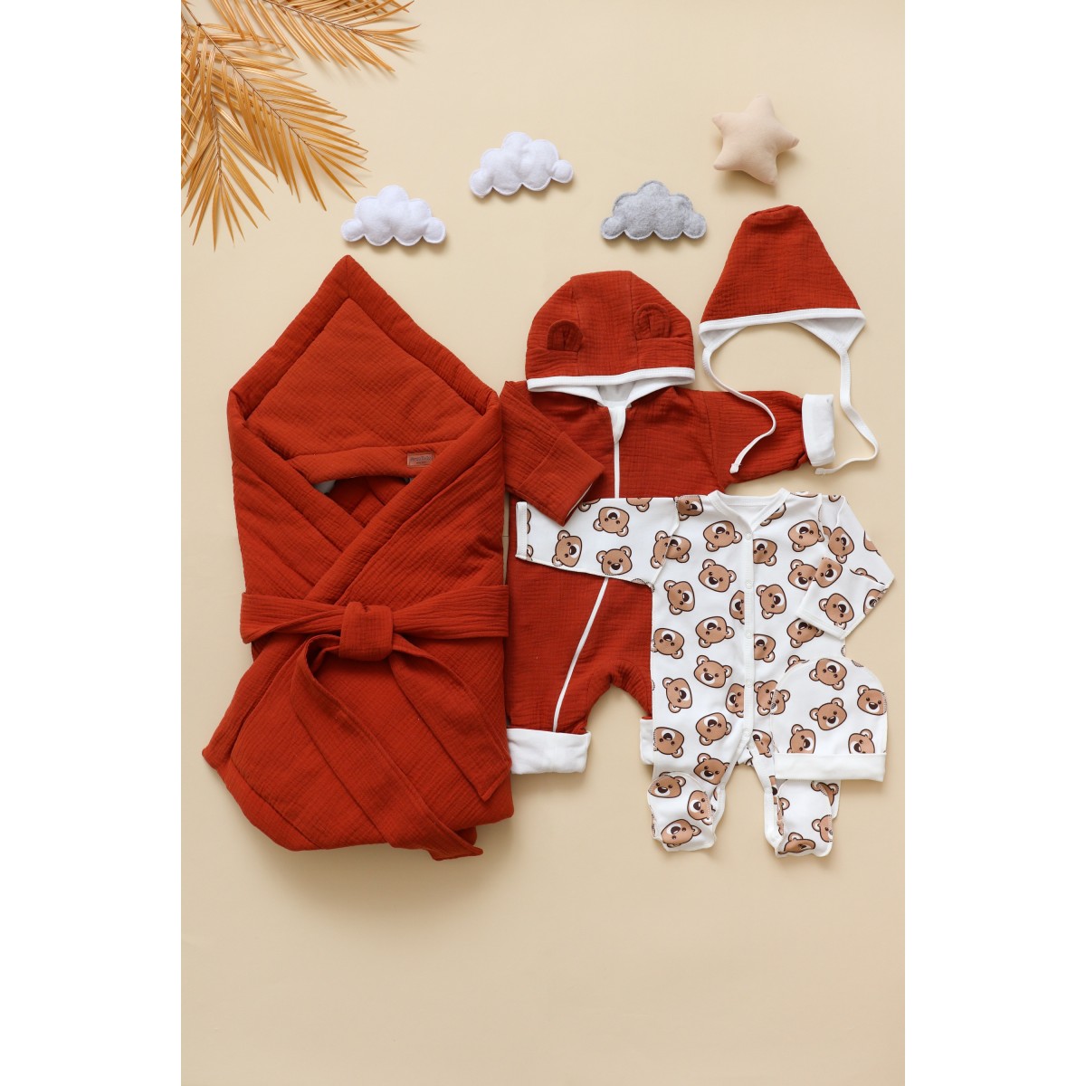 Муслиновый комплект на выписку и прогулки 6 предметов цвет: терракот 0317