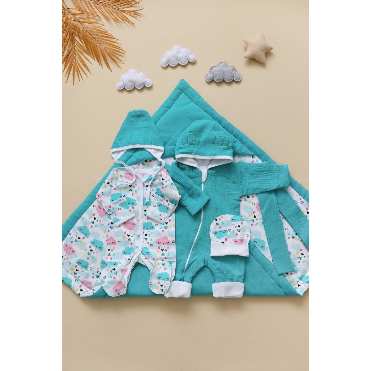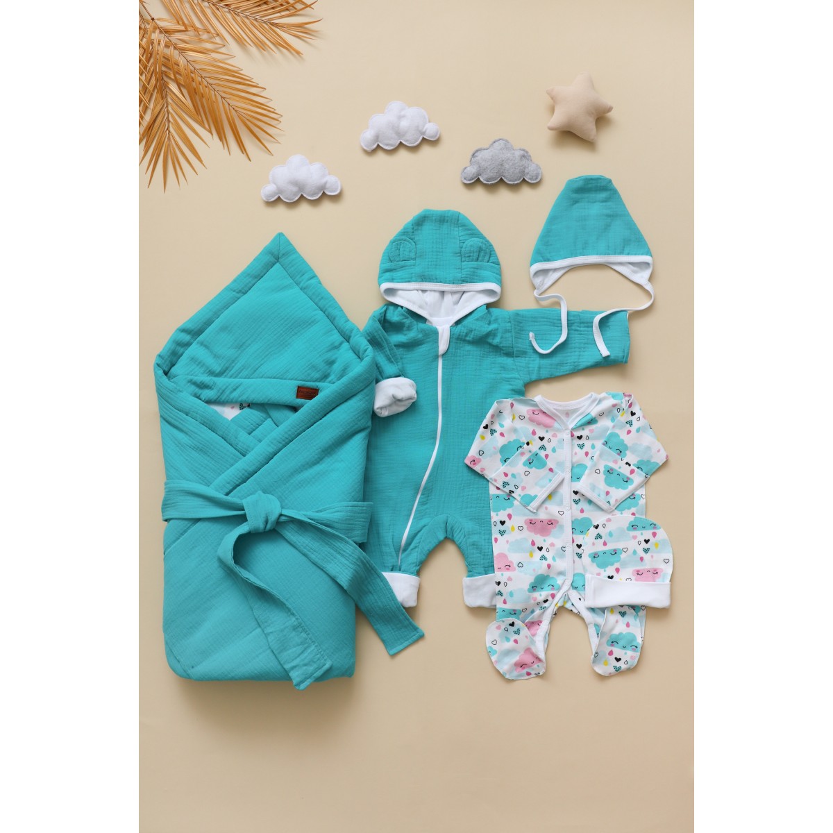 Муслиновый комплект на выписку и прогулки 6 предметов цвет: бирюзовый 0317
