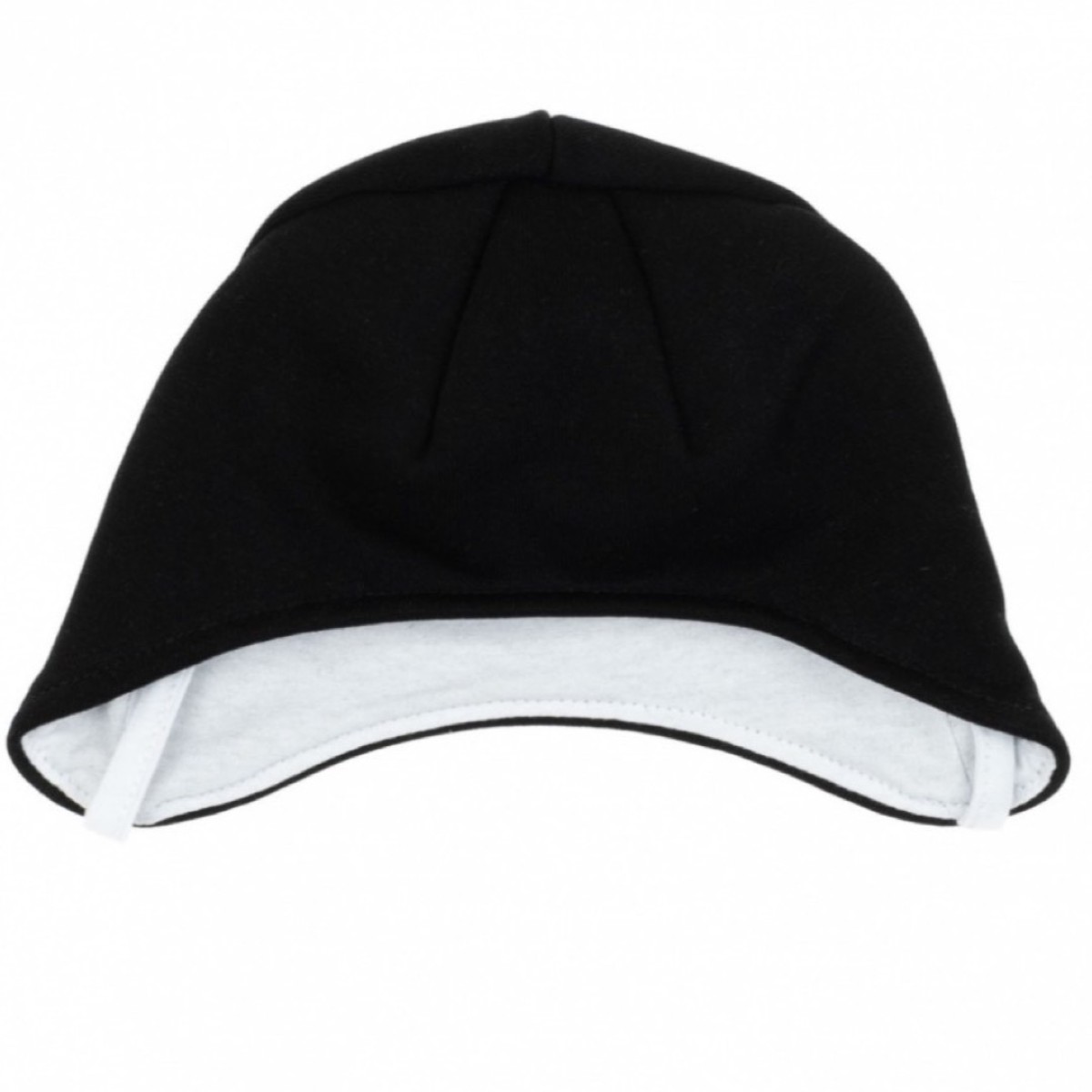Классическая шапочка на завязках. Рекомендуется подбирать точно по размеру головы ребенка, поскольку ткань не очень эластична.
