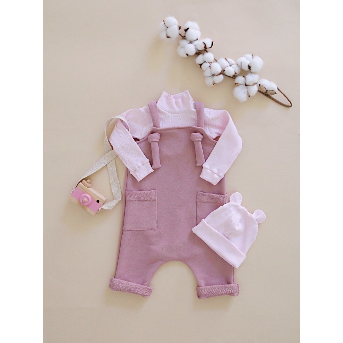 Комбинезон-песочник из футера на лямках 68 см цвет: пудровый Т-193/П
