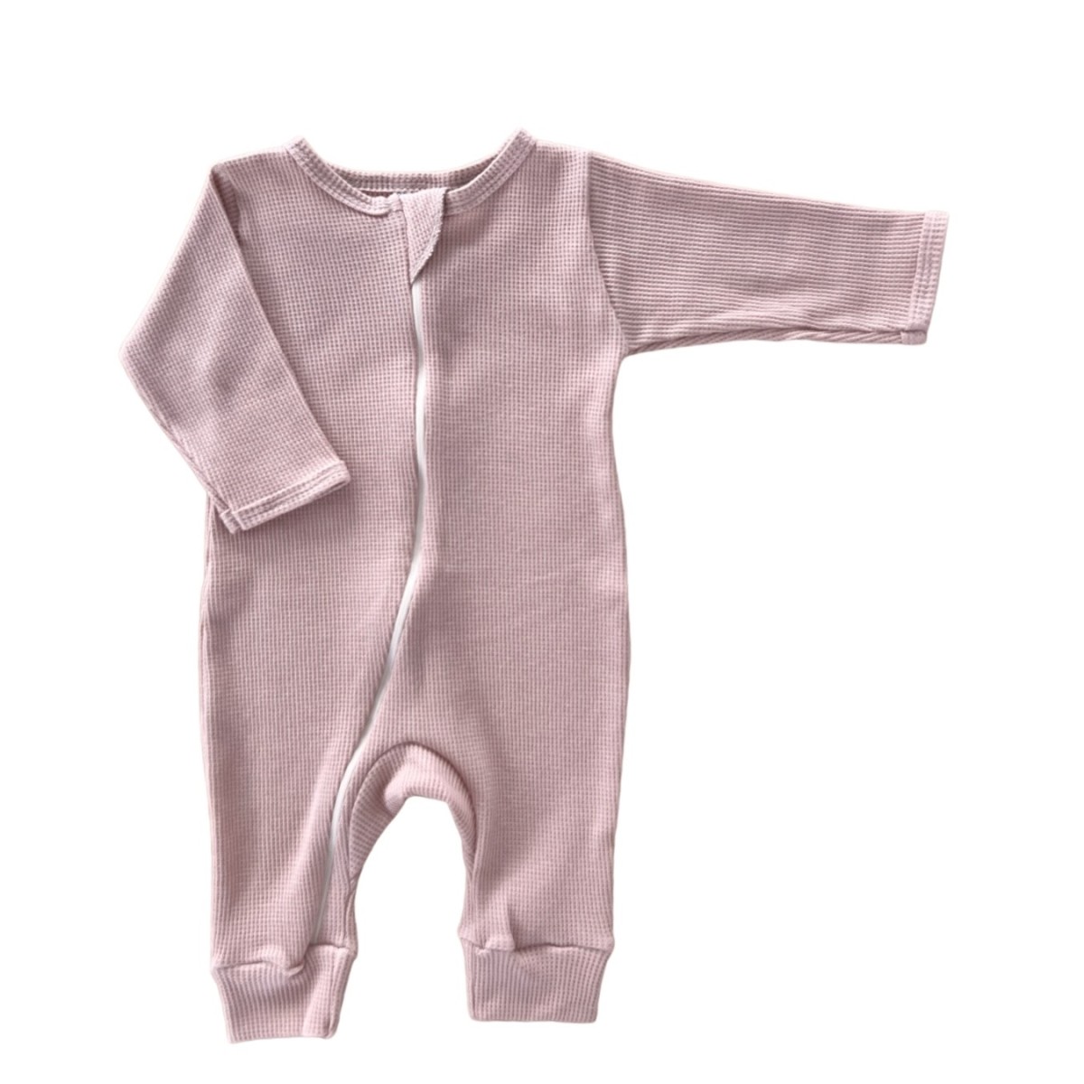 Комбинезон из вафельного трикотажа с открытой ножкой и длинным рукавом.