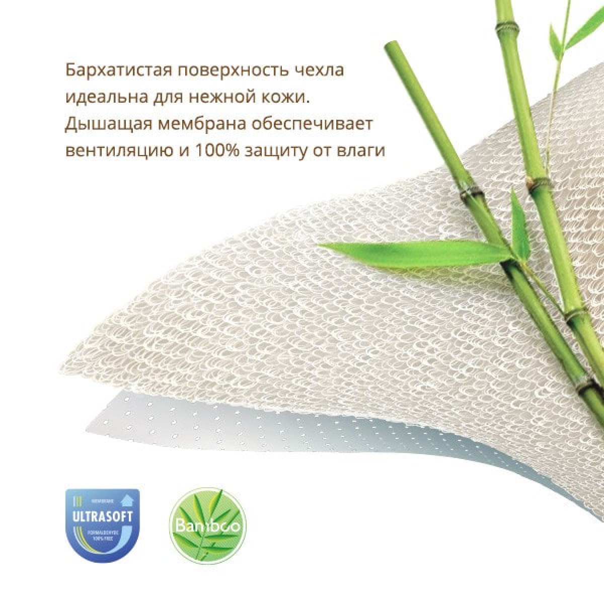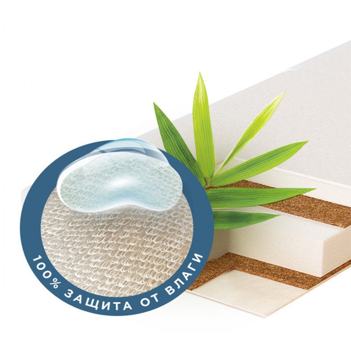 Особенность модели - инновационный чехол класса люкс из непромокаемой ткани. Верхний слой из бамбуковой ткани обеспечивает бархатистую поверхность, идеальную для нежной кожи ребенка. Дышащая мембрана Ultrasoft гарантирует вентиляцию и 100% защиту от влаги. С одной стороны матрас имеет настил из натуральной кокосовой койры, скрепленной натуральным латексом. Материал обеспечивает надежную поддержку позвоночника, известен эластичностью и долговечностью. В основе модели лежит экологически чистый материал нового поколения Hollcon Plus – он изготовлен по уникальной технологии и лучше восстанавливает форму по сравнению с другими наполнителями.