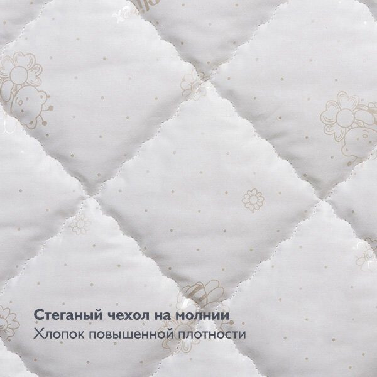 Стеганый чехол класса люкс из натурального тика на синтепоне не только приятен на ощупь, но и способен отталкивать пыль. Чехол съемный, за ним легко ухаживать. Кроме того, он мягкий и уютный, создает дополнительные комфортные условия для полноценного, безмятежного детского сна.