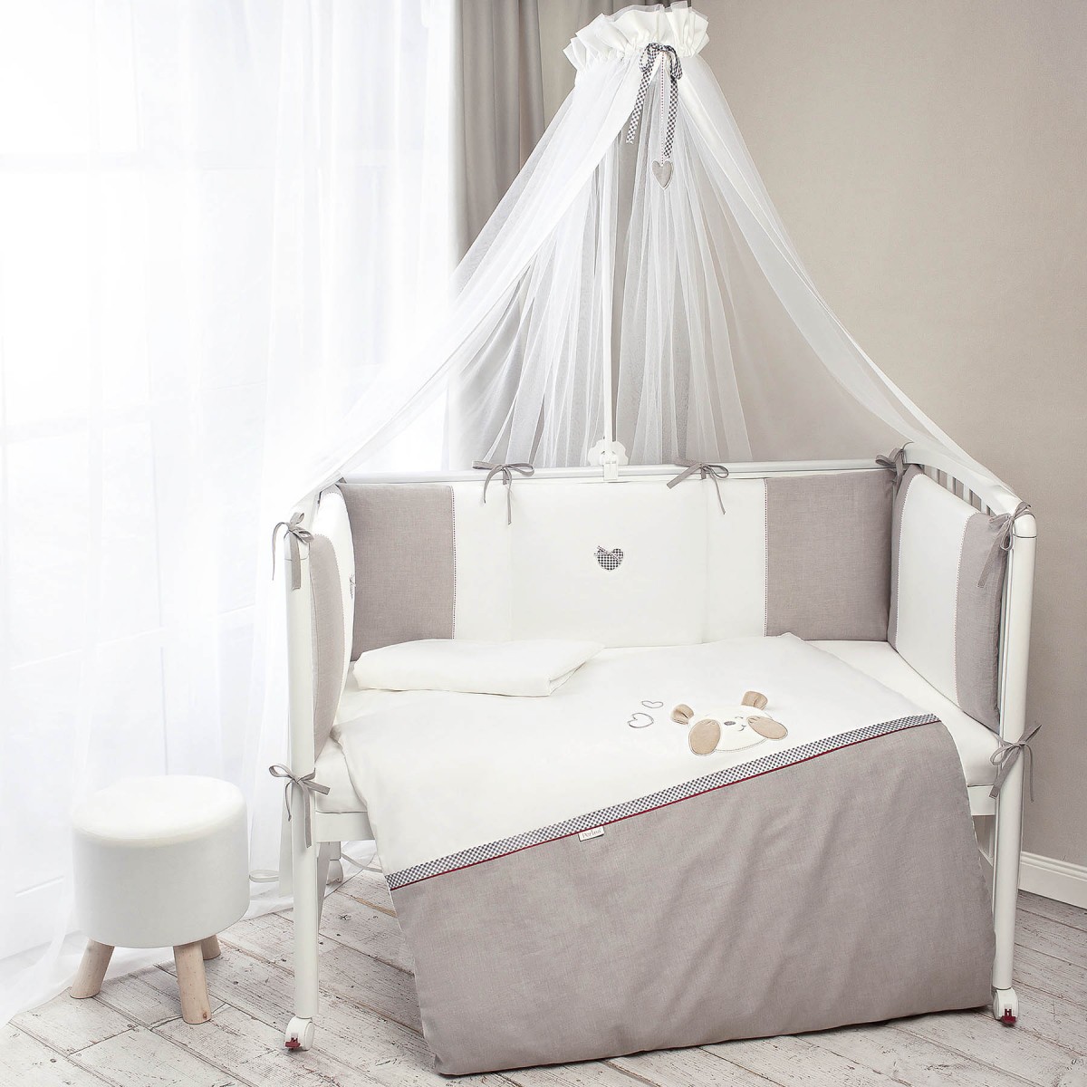 Порадует комплект и практичностью: мы продумали все до мелочей и рады представить целый список полезных деталей. Например, бортики со съемными чехлами или наполнитель одеяла и подушки с антибактериальными свойствами.