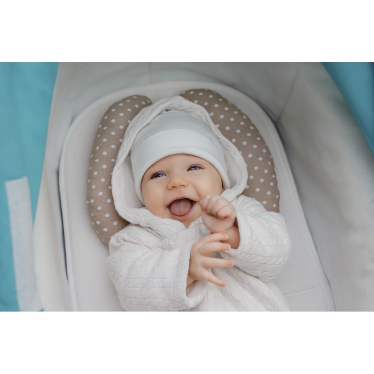 Подушка-позиционер для новорожденных представляет собой два валика, соединенных липучкой, которые мягко поддерживают голову малыша.