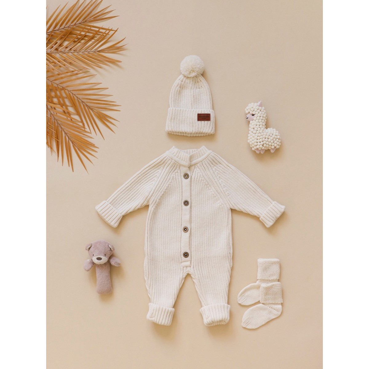 Детский вязаный набор: комбинезон +шапочка+носочки 56-68 см цвет: капучино В059