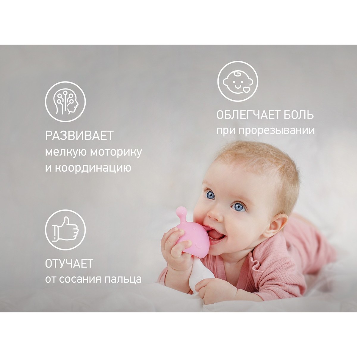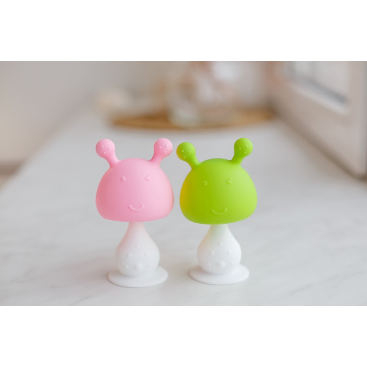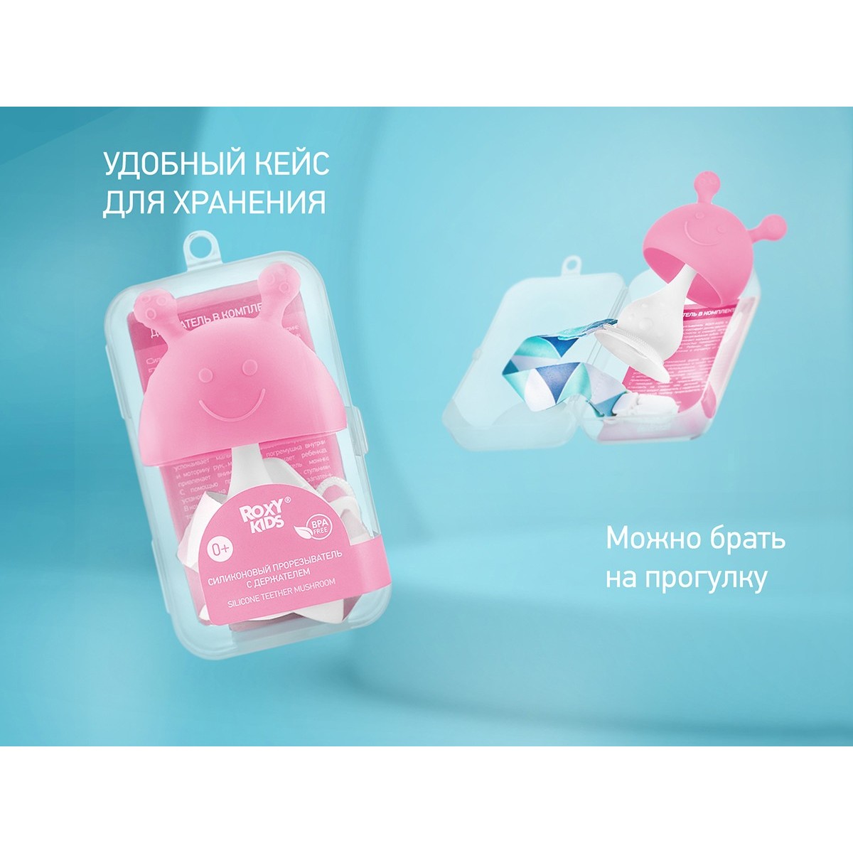 Прорезыватель для зубов MUSHROOM в форме грибочка безопасно массирует десны двумя ушками разной степени жесткости и снимает неприятные ощущения во время прорезывания зубов. Элементы в форме соска напоминают малышу мамину грудь. Кулачок малыша полностью помещается внутри полусферы грибочка. Ребенок крепко держит прорезыватель в кулачке и отучается от сосания пальца. Благодаря анатомической форме прорезыватель подходит для новорожденных и может выполнять функцию соски. Использование прорезывателя успокаивает малыша, развивает координацию и моторику рук, мелодичная погремушка внутри привлекает внимание и развлекает ребенка. С помощью присоски прорезыватель можно установить на столик или детский стульчик. В комплект входит держатель с надежной запатентованной клипсой, поэтому прорезыватель не упадет и не потеряется. Один конец держателя прикрепляется к прорезывателю, а второй при помощи специальной клипсы пристегивается к одежде ребенка. Держатель выполнен из двух слоев полиэстера, прочно сшитых вместе, поэтому он не износится и не порвется.