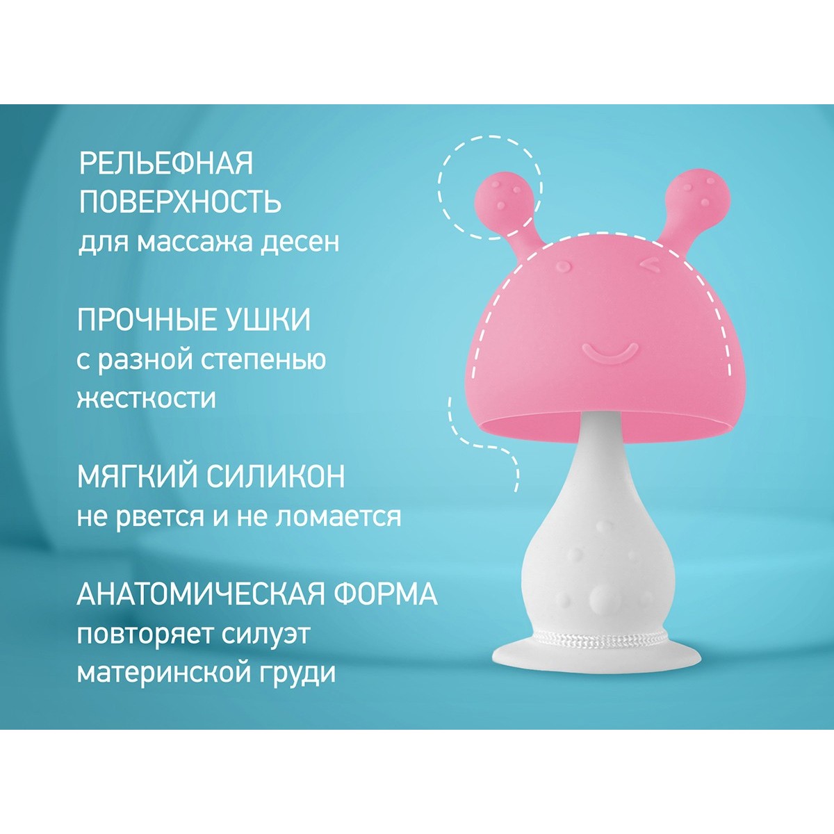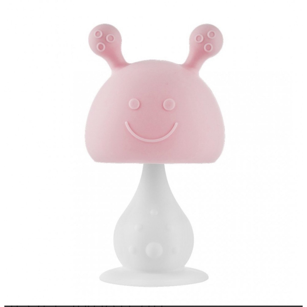 Силиконовый прорезыватель с погремушкой " Грибочек " с держателем цвет: розовый RST-001-P