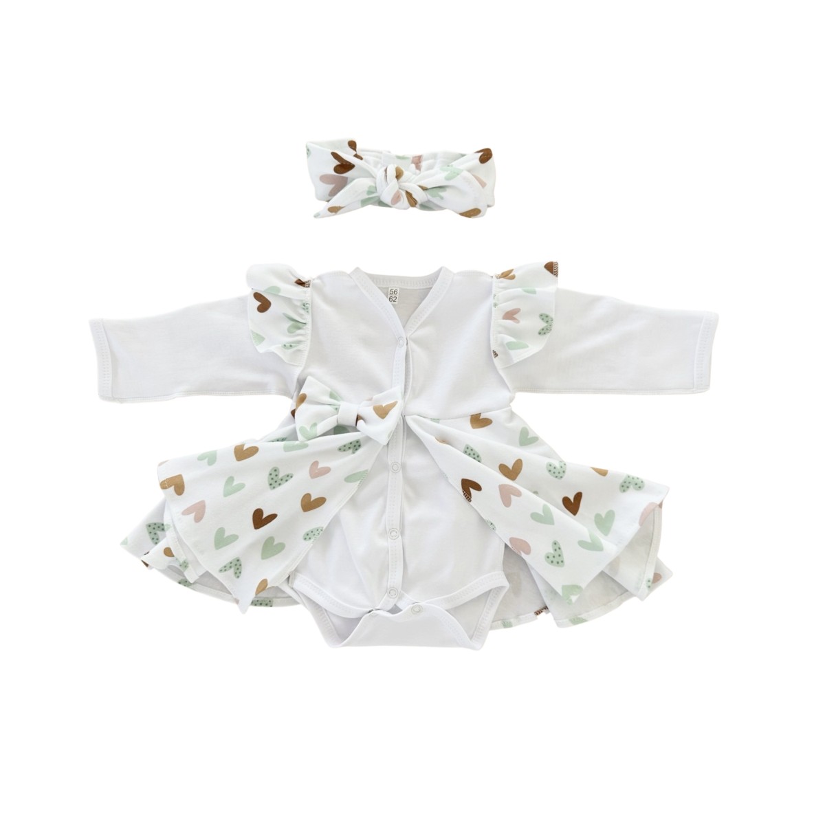 Боди на кнопках с юбочкой и солохой 56-62 см цвет: сердечки Т-131-1