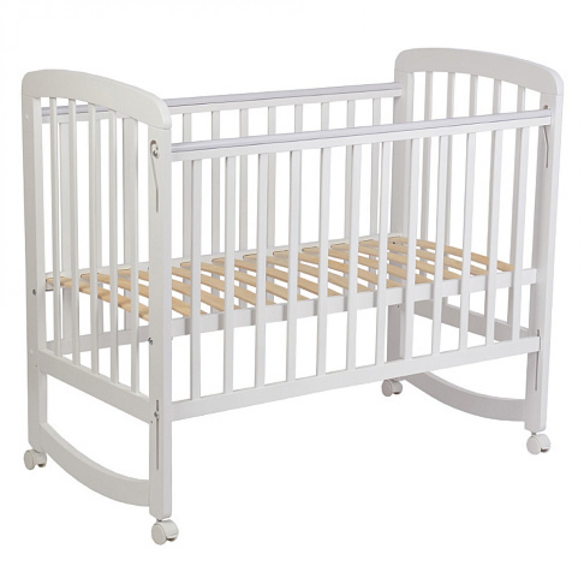Кровать детская деревянная Polina колесо-качалка + накладки-грызунки цвет: белый 0003109-04