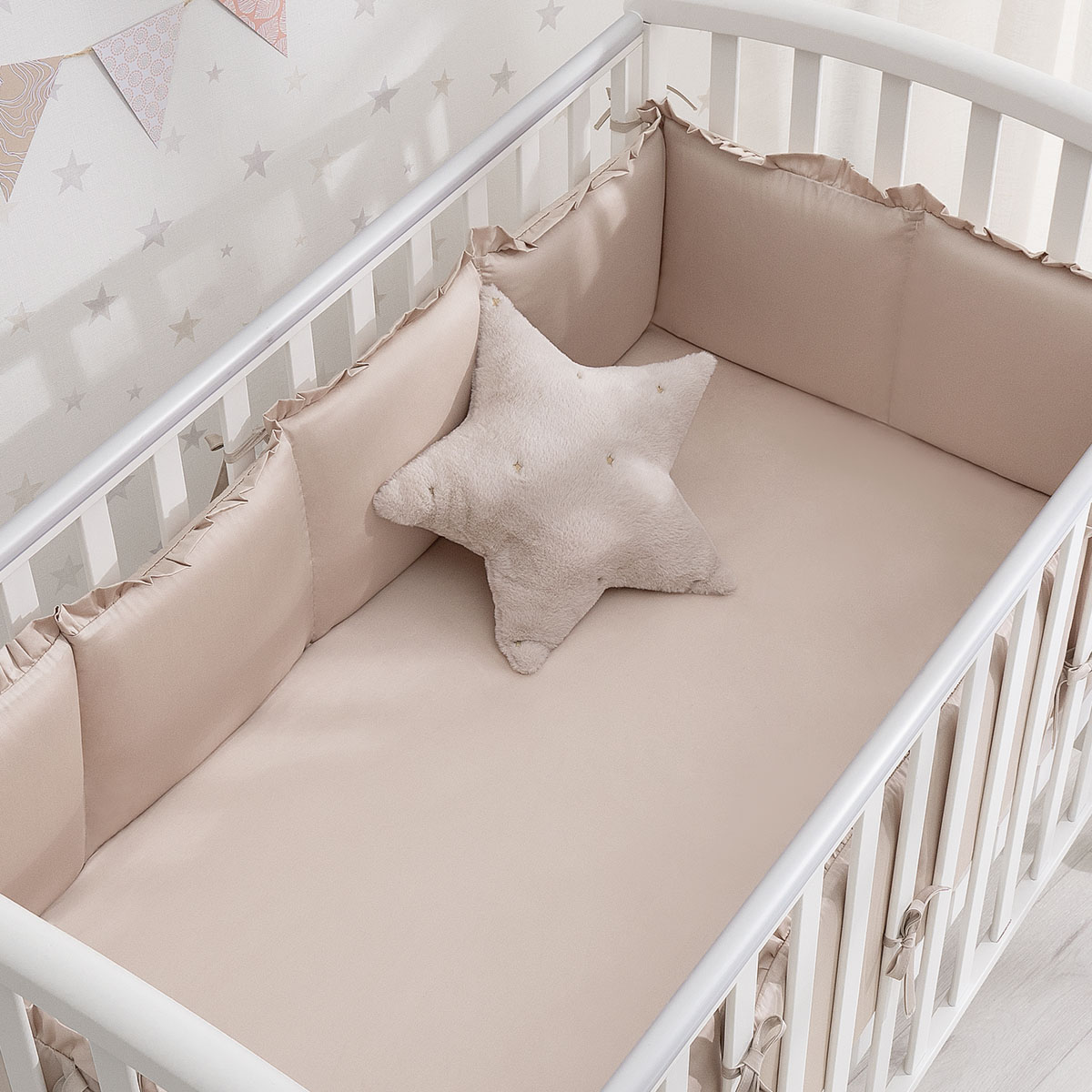 Сатиновая простыня на резинке — красивое и практичное дополнение к вашему постельному комплекту. Натуральный хлопок экологичен и безопасен для ребенка, простыня деликатно касается кожи малыша нежной шелковистой поверхностью.