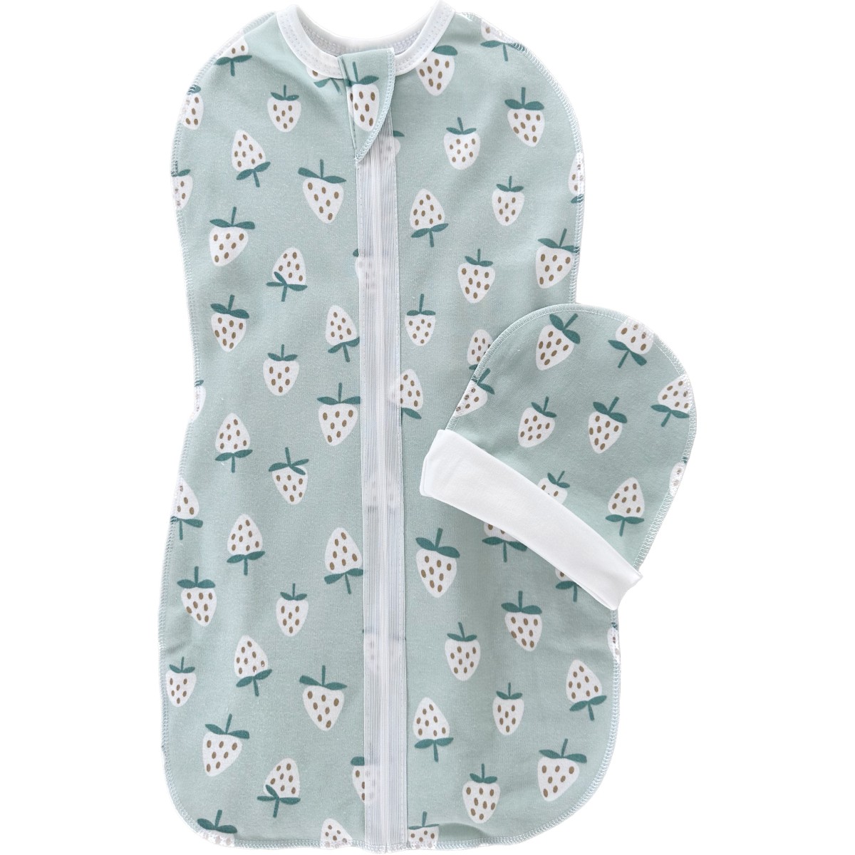 Пеленка-кокон на молнии с шапочкой 56-62 см принт: клубнички Т-007