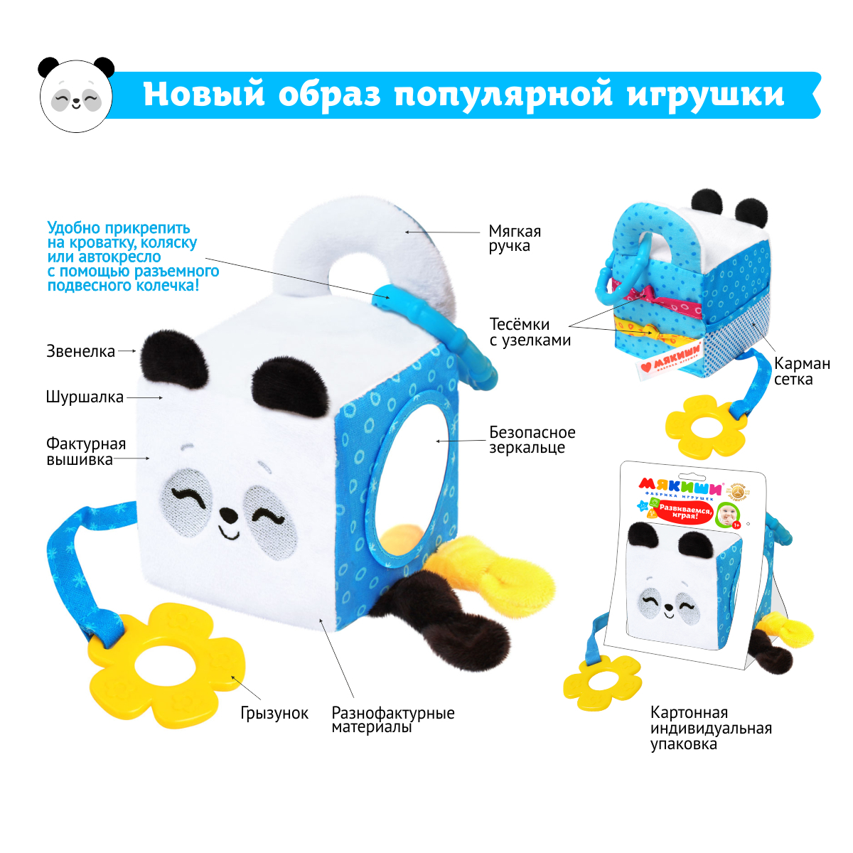 Кубик многофункциональный: он шуршит, звенит, у него есть безопасное зеркальце, грызунки, кармашки и петельки. Игрушку удобно прикрепить на кроватку, коляску или автокресло с помощью разъемного подвесного колечка. Сам кубик сшит из приятных на ощупь материалов: плюша и хлопка.