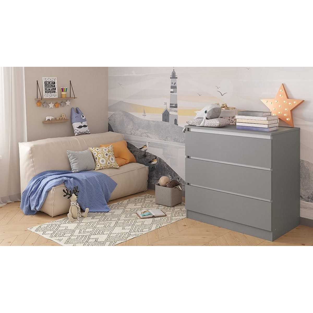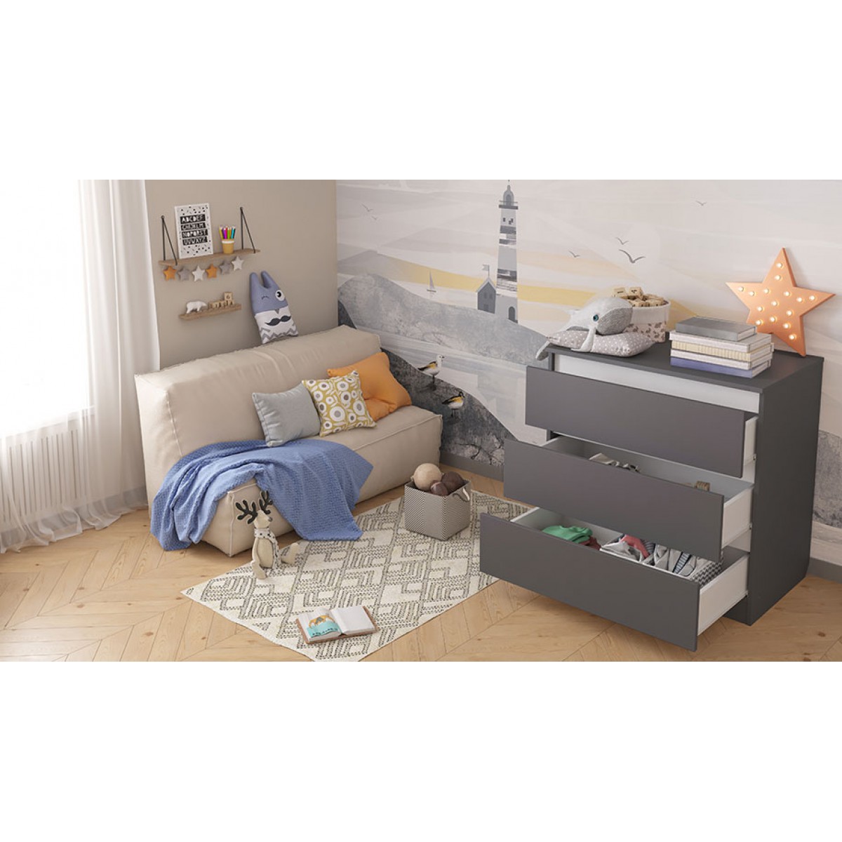 Благодаря универсальному цвету изделие подходит девочкам и мальчикам. В трех вместительных ящиках на шариковых направляющих поместятся все те детские вещи, аксессуары и игрушки, которые должны быть всегда под рукой.