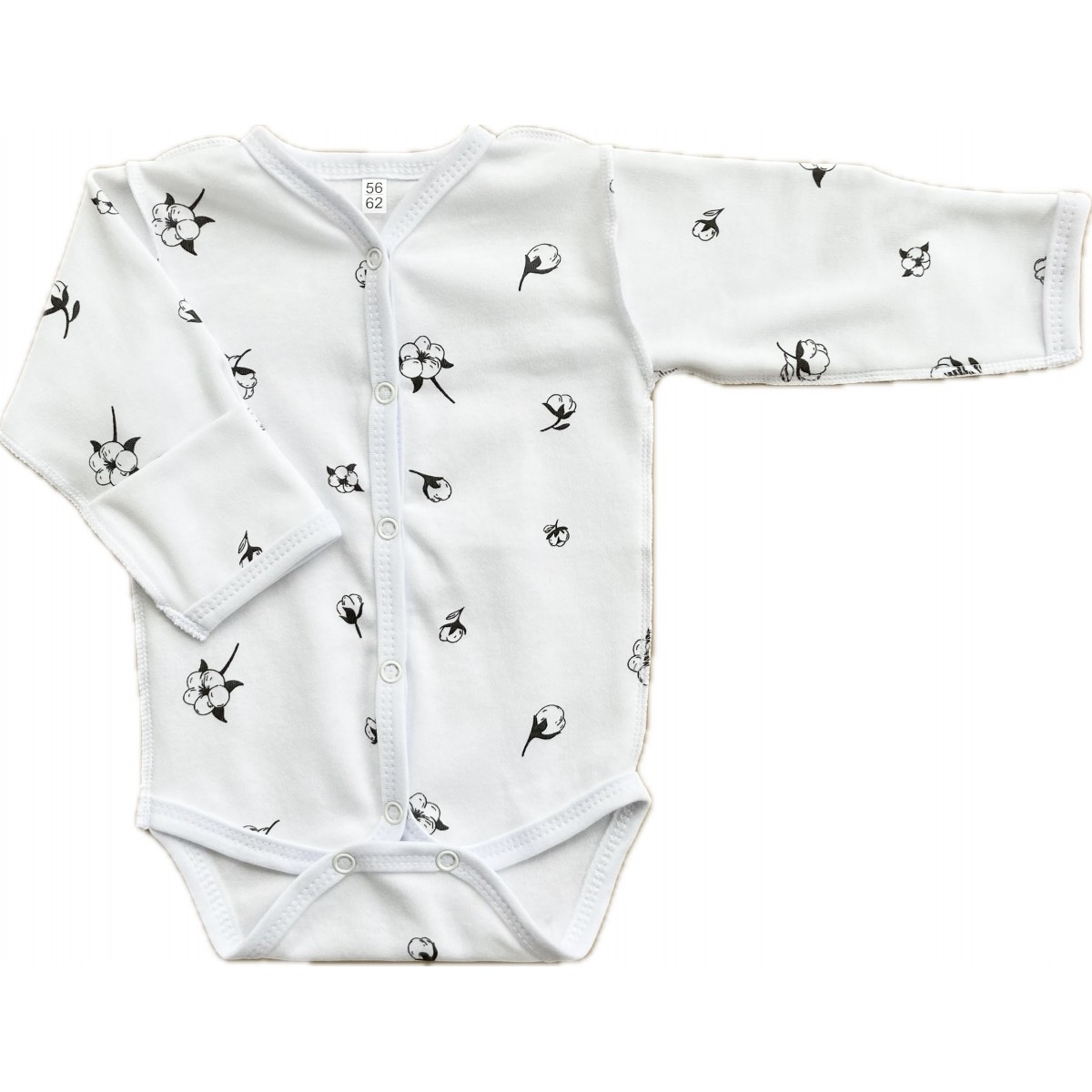 Полностью на кнопках, очень удобно одевать, не нужно лишний раз тревожить кроху , одевая боди через голову : просто расстёгиваете боди сверху донизу , кладёте малыша и застёгивайте . Со швами наружу и отворотными ручками-антицарапками.