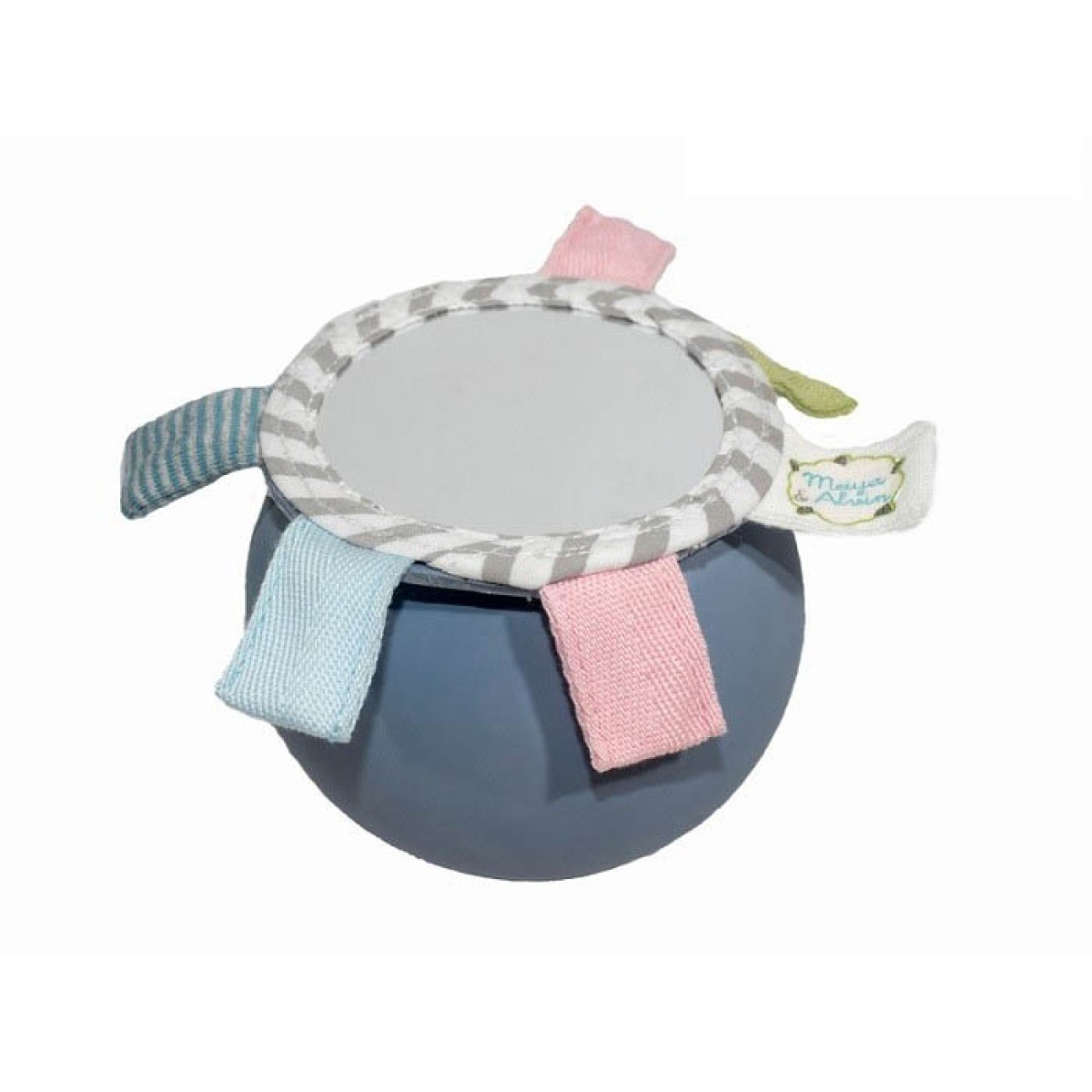 Выполнен из натурального каучука сока дерева Гевеи, сочетает разные материалы (каучук+100% хлопок, пластиковое зеркало), что развивает тактильную чувствительность и мелкую моторику и сенсорику. Внутри находится бубенчик, издает приятный и негромкий звук, обеспечивает сосредоточение слухового и зрительного внимания и понимание причинно-следственных связей.