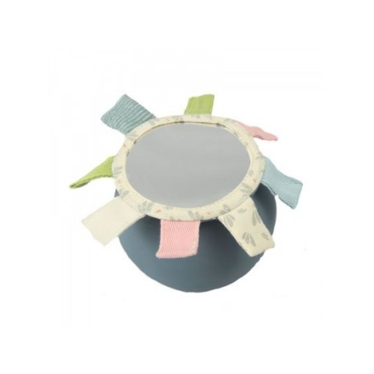 Это не просто мяч, а мяч-погремушка с хлопковыми язычками и безопасным зеркалом