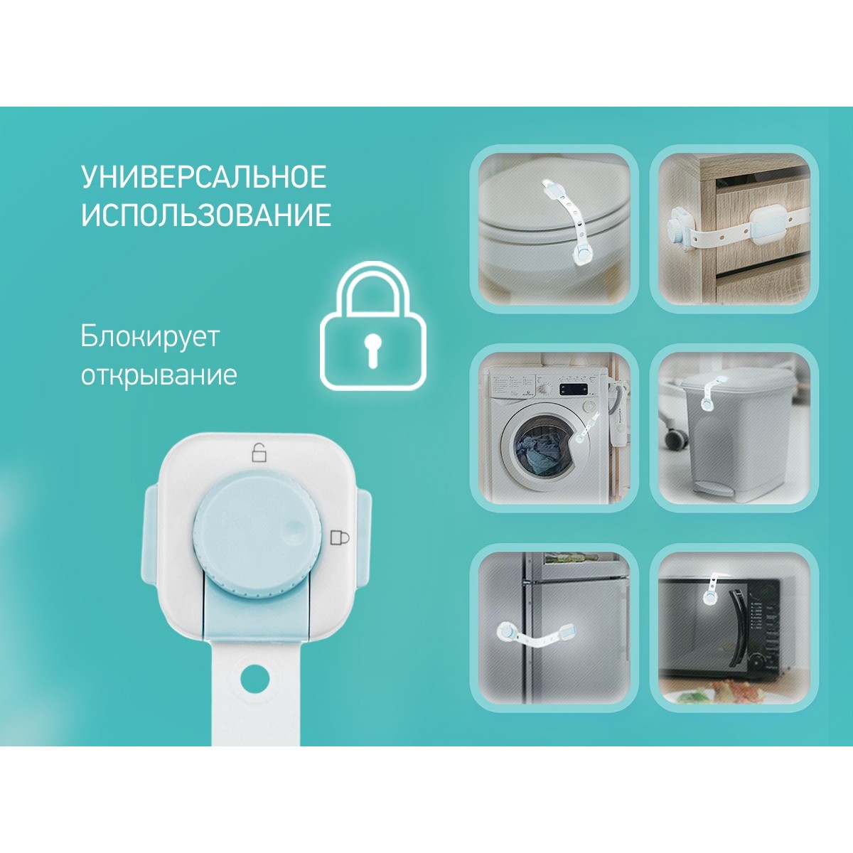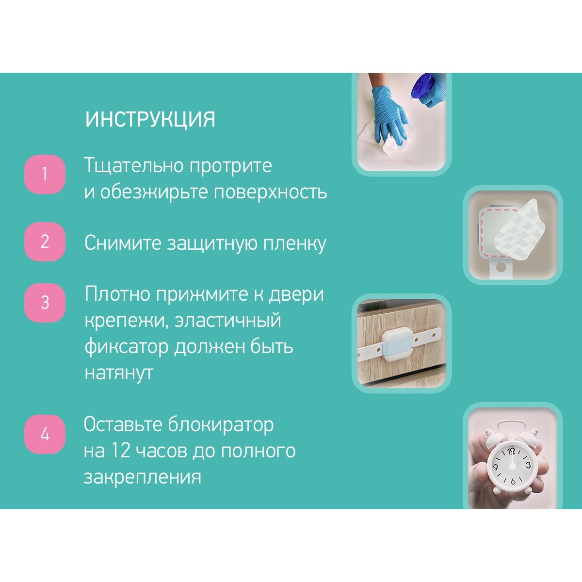 Гибкий регулируемый блокиратор для мебели будет оберегать ребенка от взаимодействия с опасными предметами, например, спичками и бытовой химией, а также не позволит малышу прищемить пальчики дверцами или ящиками. Он состоит из двух крепежей и эластичного регулируемого фиксатора. Используется для препятствия открыванию двухстворчатых дверей, ящиков стола, створок шкафов, дверей холодильника, крышки унитаза и т.п. Гибкость материала и наличие отверстий позволяет устанавливать блокиратор на углы и неровные поверхности, в том числе под углом. Двухсторонний скотч обеспечивает надежное крепление и легко удаляется при необходимости. Отлично держится на самых разных поверхностях и легко снимается, когда это нужно родителям. Благодаря отверстиям длина эластичного фиксатора регулируется.