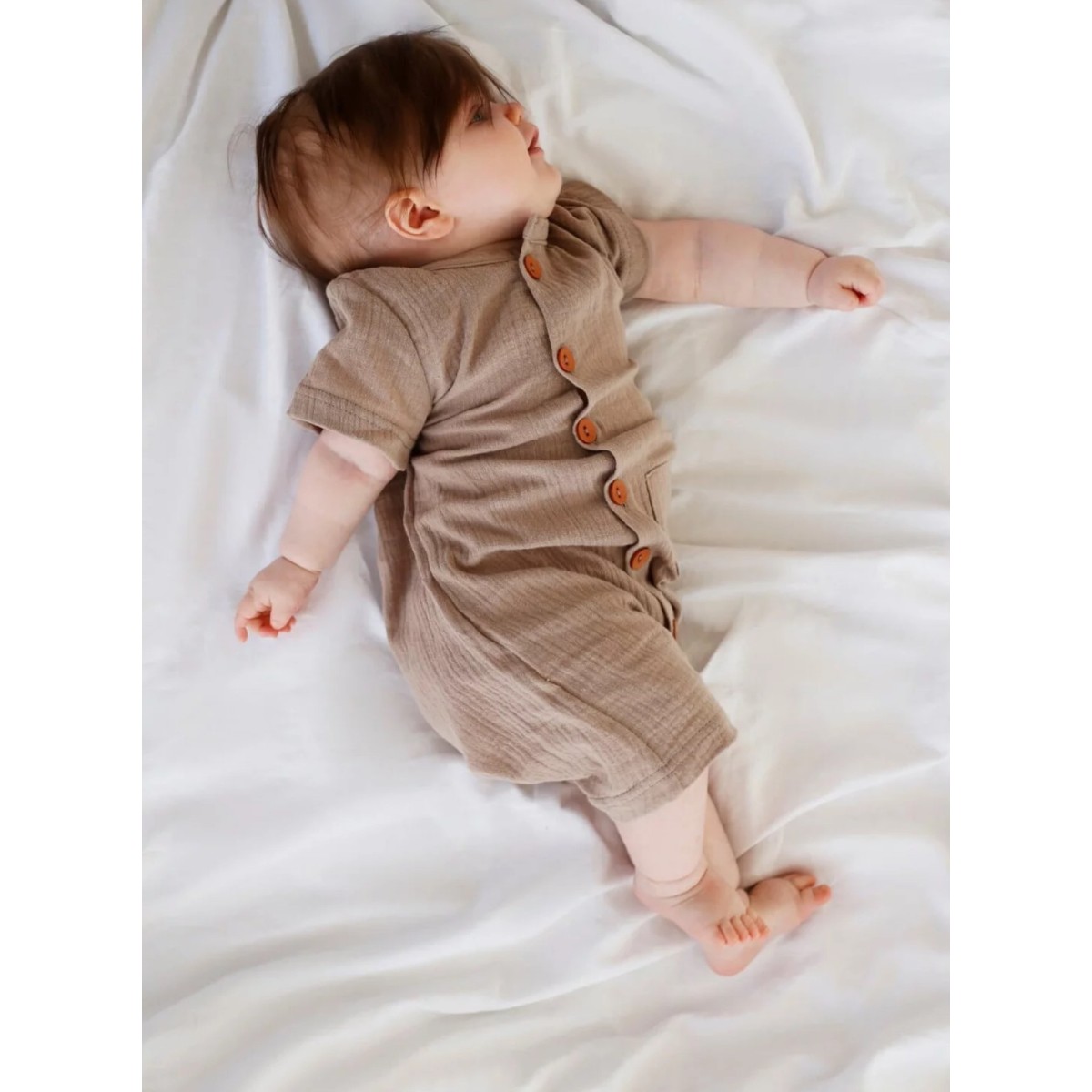 Комфортный песочник, идеален на летний период и для дома. Дышащий, легкий и невесомый. Удобные пуговички, с помощью которых можно быстро переодеть малыша.