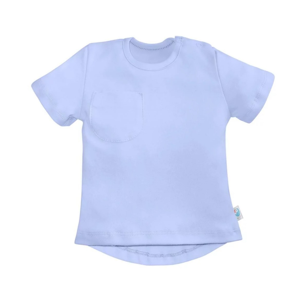 Футболка с коротким рукавом, удлиненной спинкой и карманом на груди. Две кнопки на плече для удобства одевания.