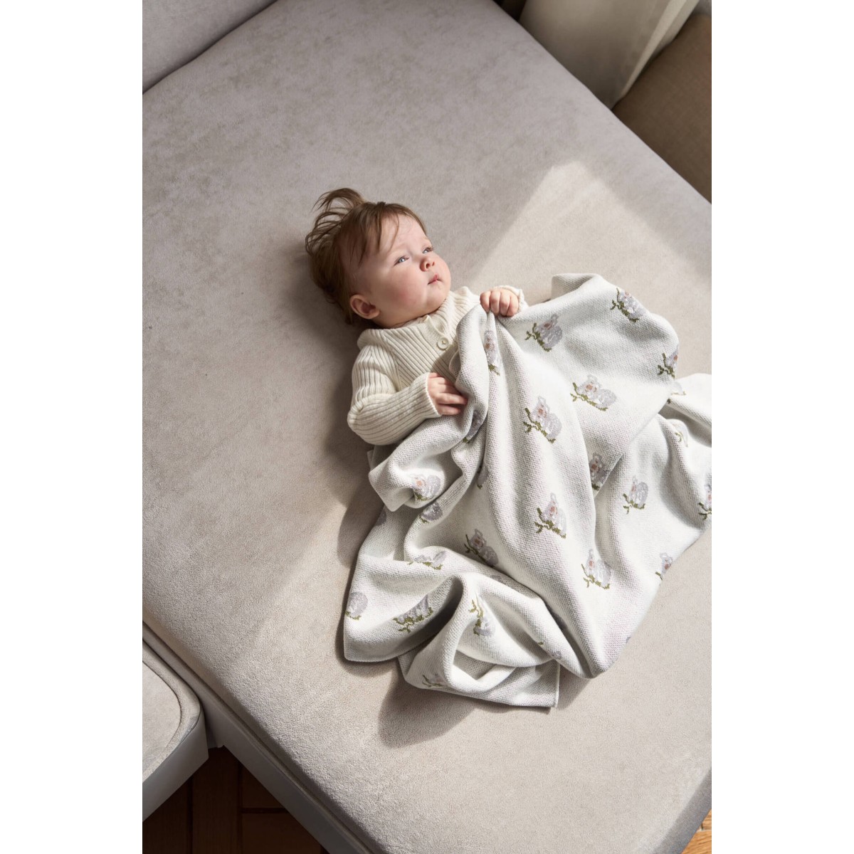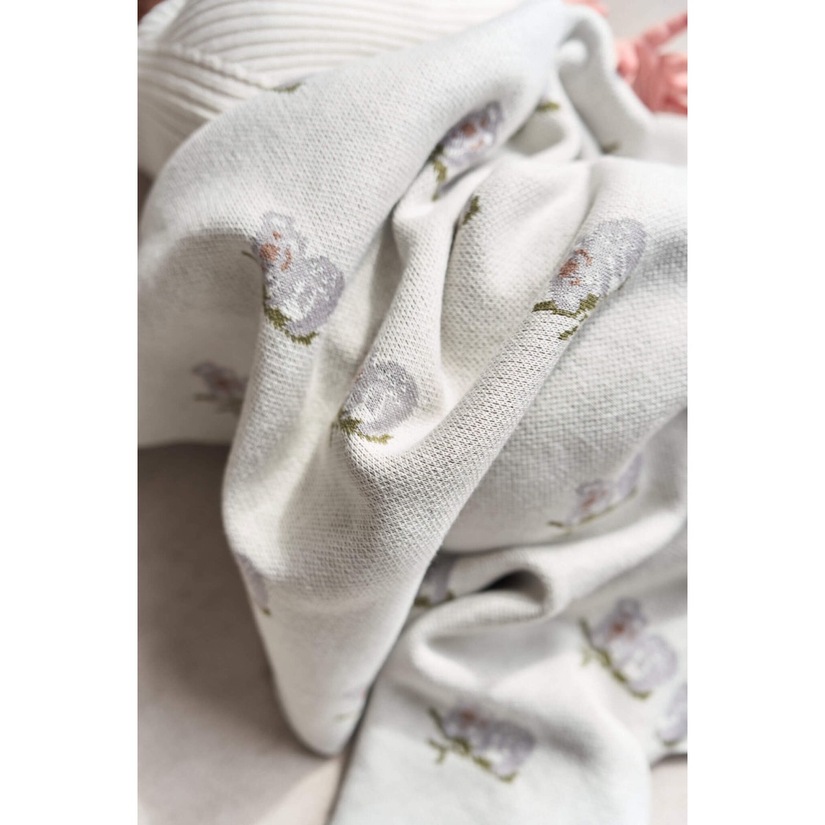 Мягкий вязаный плед изготовлен их 50% хлопка и 50% акрила.