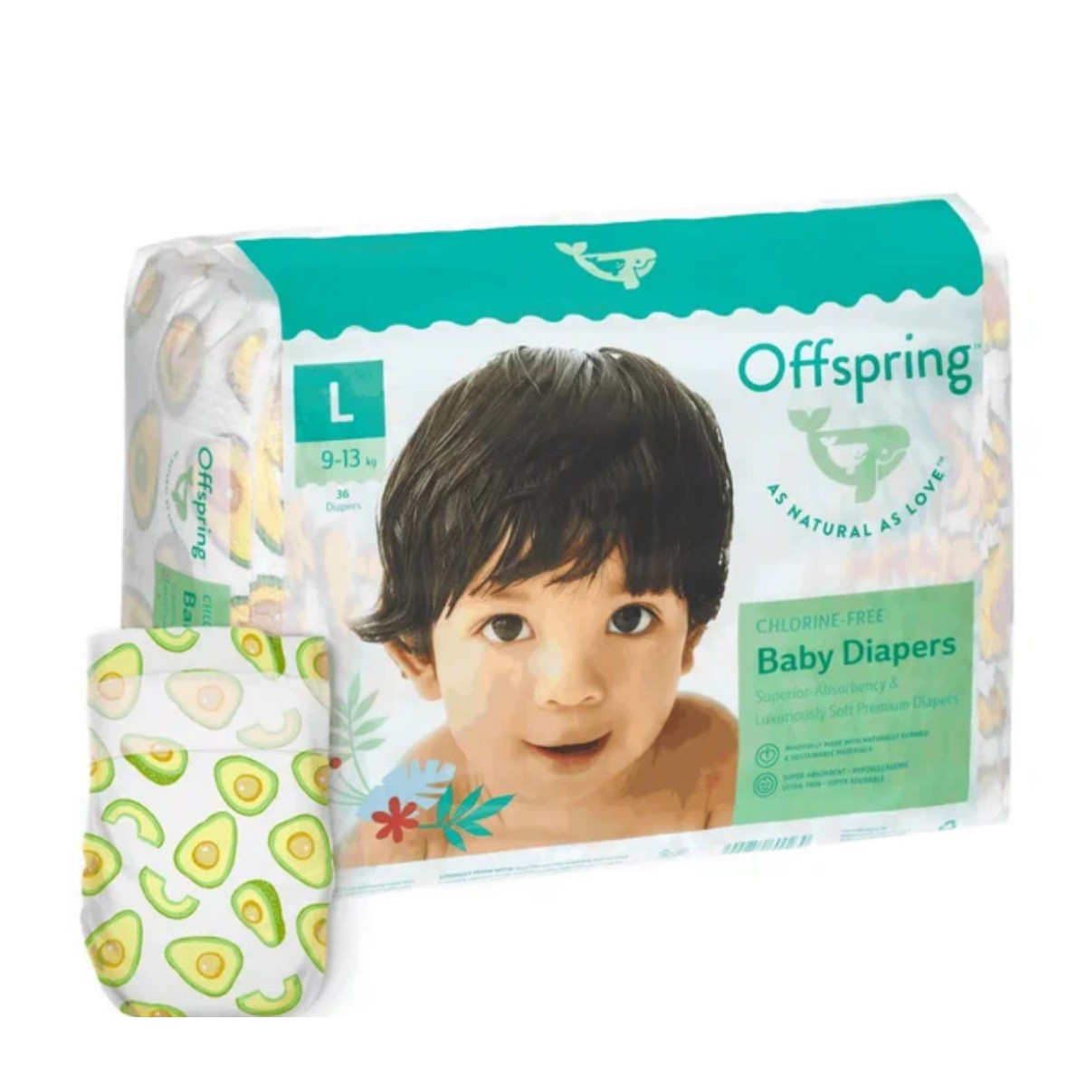 Эко-подгузники Offspring L 9-13 кг 36 шт цвет: авокадо