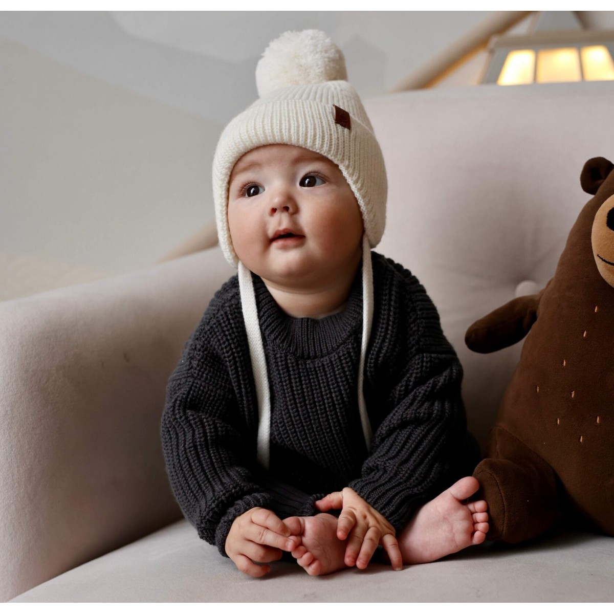 Благодаря завязкам шапка плотно сидит по голове и закрывает уши. Изделие не мнется, отлично держит форму и цвет после стирки. Подкладка из 100% хлопка создает дополнительный слой и лучше защищает от ветра. Идеально подойдет для осенне/весенних и зимних прогулок. Аккуратные удобные завязки без узлов и наконечников.