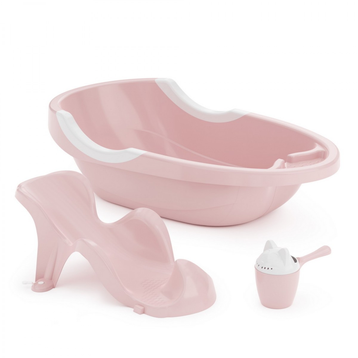В детский набор для купания входит ванна (90.4*47.5*25.5 см), горка (50,5*20,5*25 см) и ковш 1 л (23,5*12,5*17 см). Все изделия изготовлены из прочного и безопасного пластика. Обтекаемые гладкие формы без острых краев обеспечат безопасность ребенка. Габаритная ванночка вмещает до 45л воды, что поможет создать атмосферу мини бассейна для малыша. Анатомическая форма горки обеспечит комфортное и надежное положение ребенка при купании. Наличие ковша облегчит процесс купания, а крышка-лейка в виде кошачьей мордочки, заинтересует любого ребенка и превратит водные процедуры в весёлую игру. Набор сделает процесс купания лёгким и приятным как для мамы, так и для ребёнка.