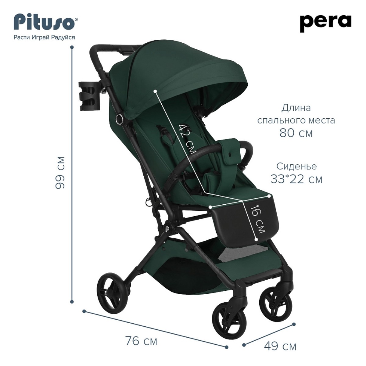 Новая версия стильной, маневренной и легкой (5.7 кг) прогулочной коляски PITUSO PERA идеально подходит не только для прогулок, но и путешествий. Складываясь одной рукой до очень компактных размеров, коляска подходит под параметры ручной клади в самолете.