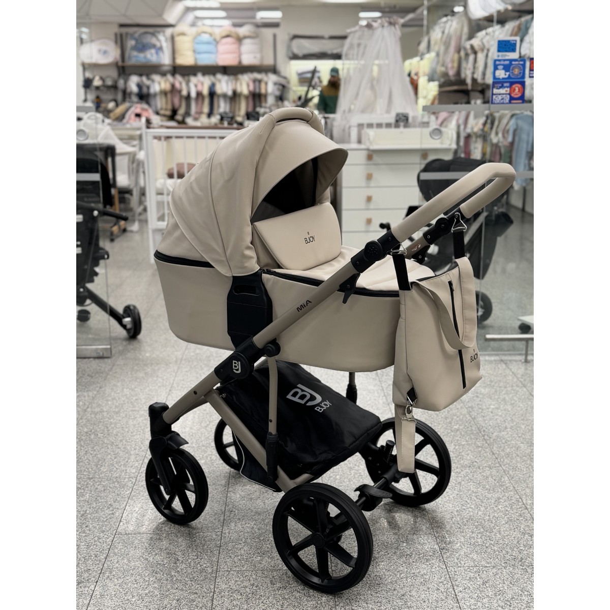 Коляска детская 2 в 1 Bjoy Mia LT кожа цвет: бежевая на бежевой раме 02