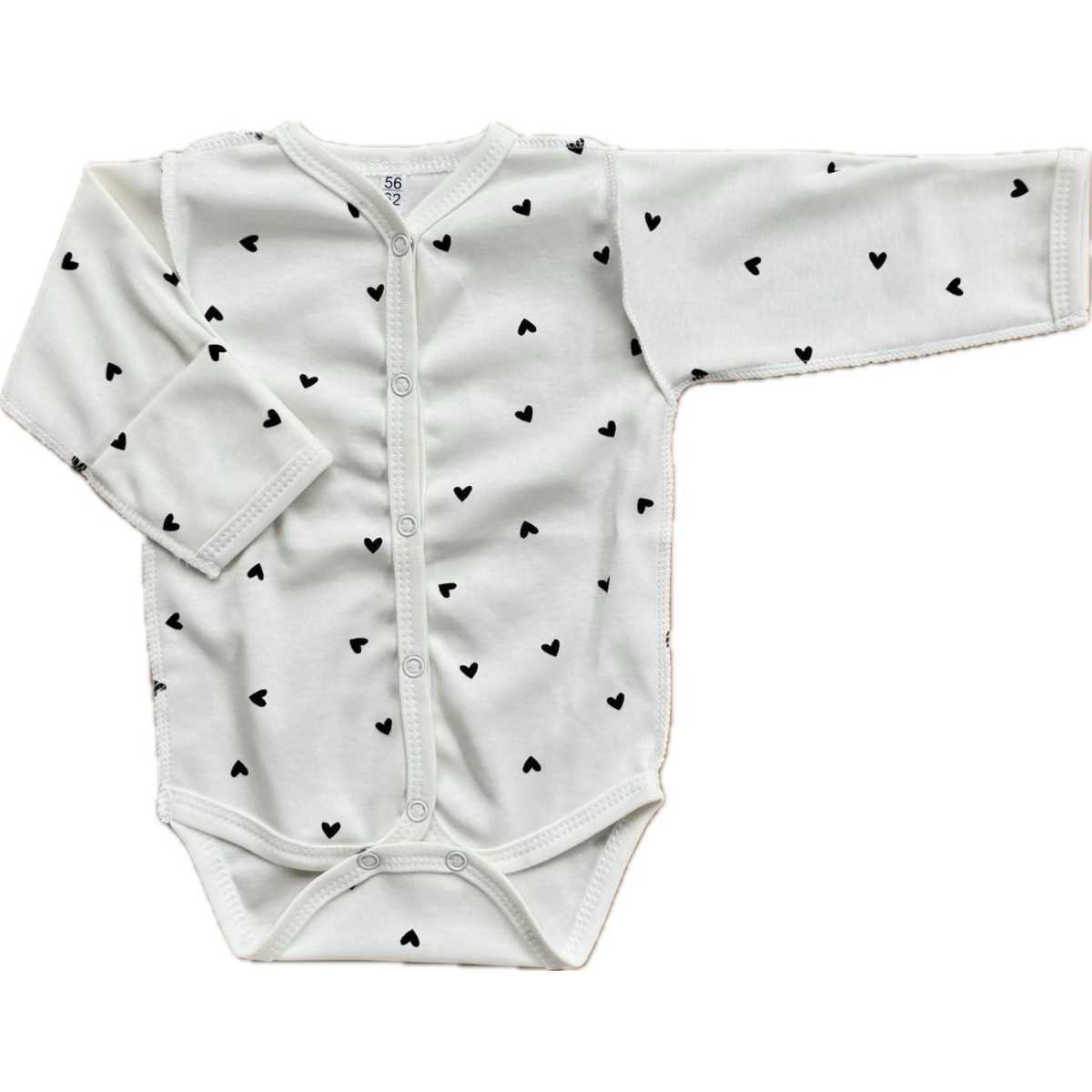 Боди с длинным рукавом на кнопках 56-62 см принт: сердечки монохром Т-131