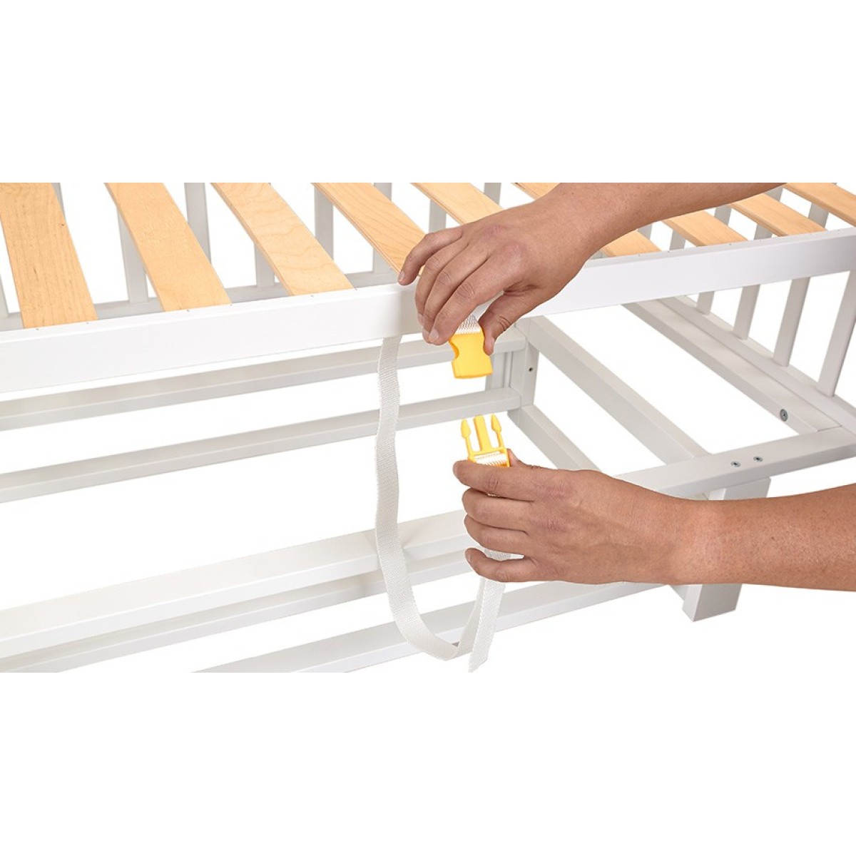 Чтобы изделие в приставной версии можно было надежно прикрепить к родительской кровати в комплектации идут 2 фиксирующих ремешка с фастексом.
