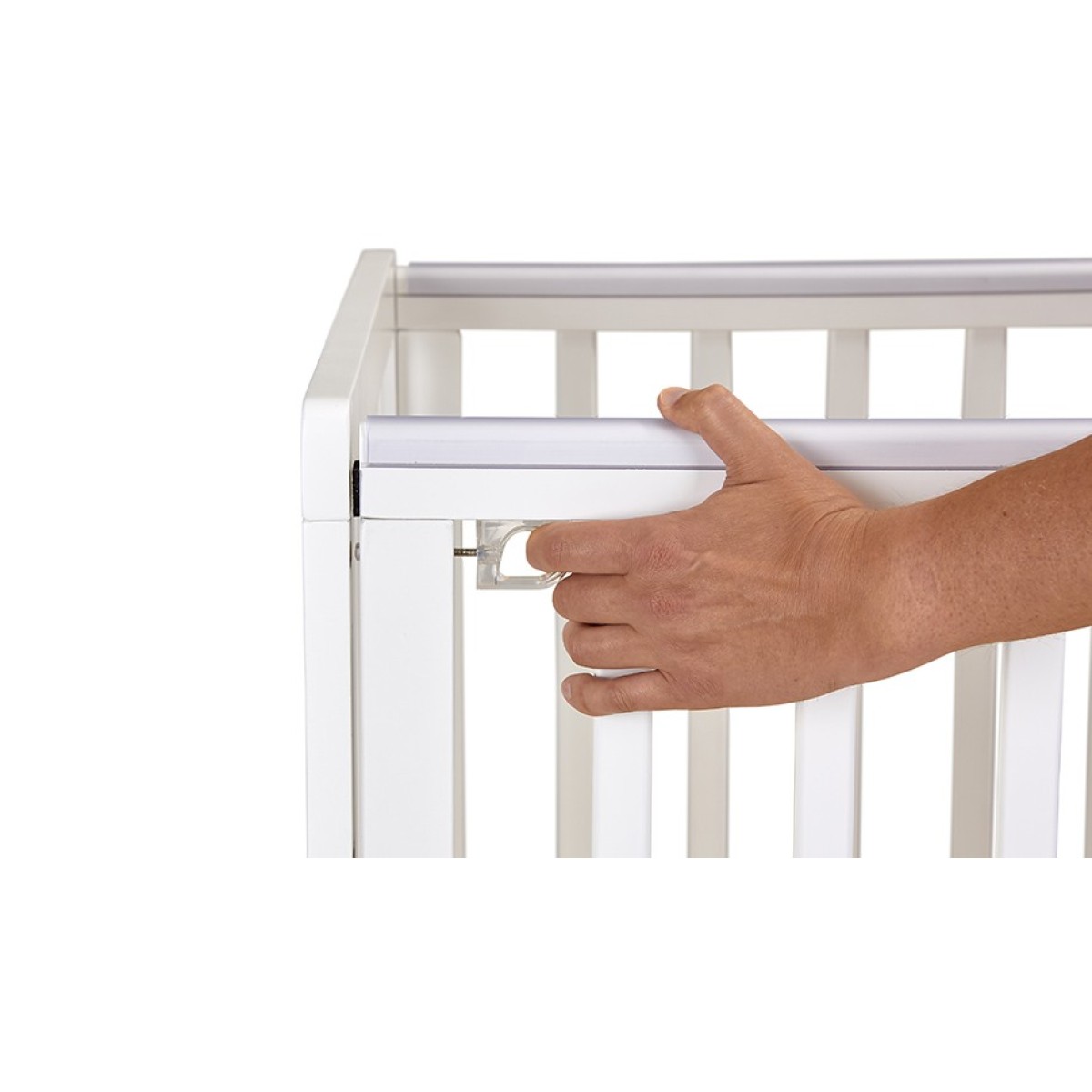 Благодаря съемной передней боковине кроватка может быть использована в качестве приставной к родительской кровати, что позволяет малышу быть ближе к маме, облегчая процесс ухода и кормления в течение ночи.