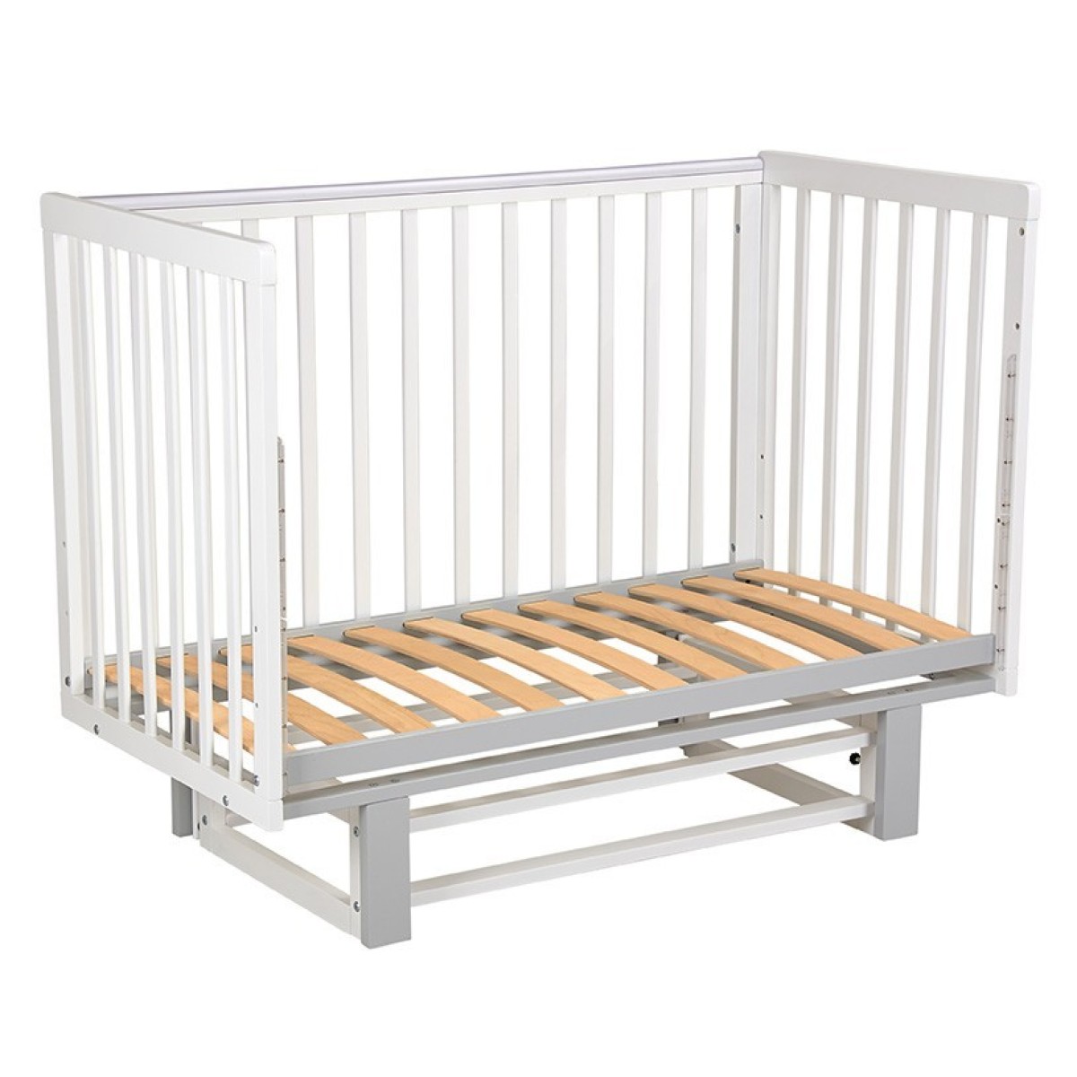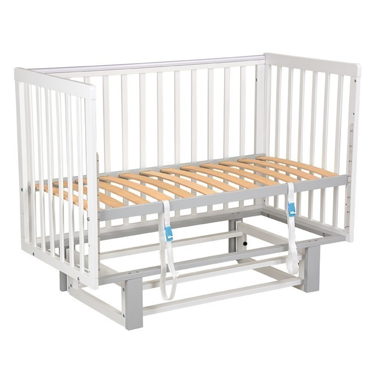 Детская деревянная кроватка Lea 2 с быстросъемной стенкой и маятником цвет: белый-серый 0003167-16