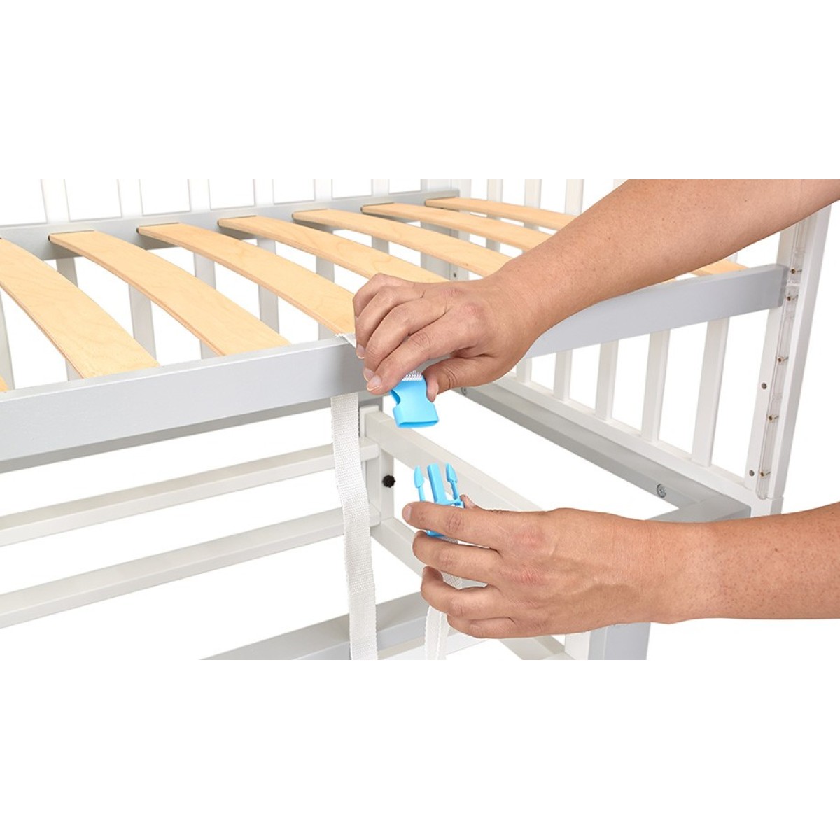 Чтобы изделие в приставной версии можно было надежно прикрепить к родительской кровати в комплектации идут 2 фиксирующих ремешка с фастексом.