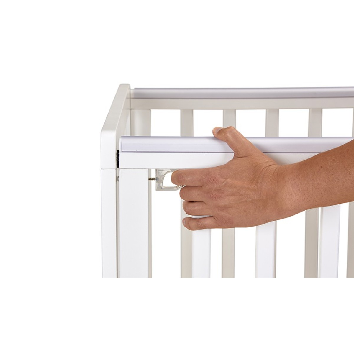 Благодаря съемной передней боковине кроватка может быть использована в качестве приставной к родительской кровати, что позволяет малышу быть ближе к маме, облегчая процесс ухода и кормления в течение ночи.