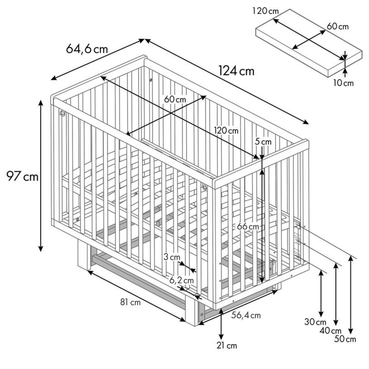 -стандартный размер матраса – 120х60 см (приобретается отдельно);