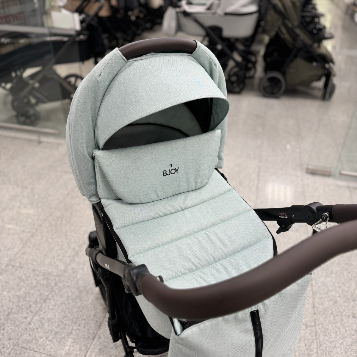 BJOY MIA – это еще и прогулочная коляска, предназначенная для растущего ребенка. Сиденье оснащено регулируемым капюшоном, что позволяет адаптировать его к текущим погодным условиям. Спинка и подножка регулируются, что позволяет принять удобное положение. Ремни «растут» вместе с ребенком, обеспечивая безопасность во время прогулок.