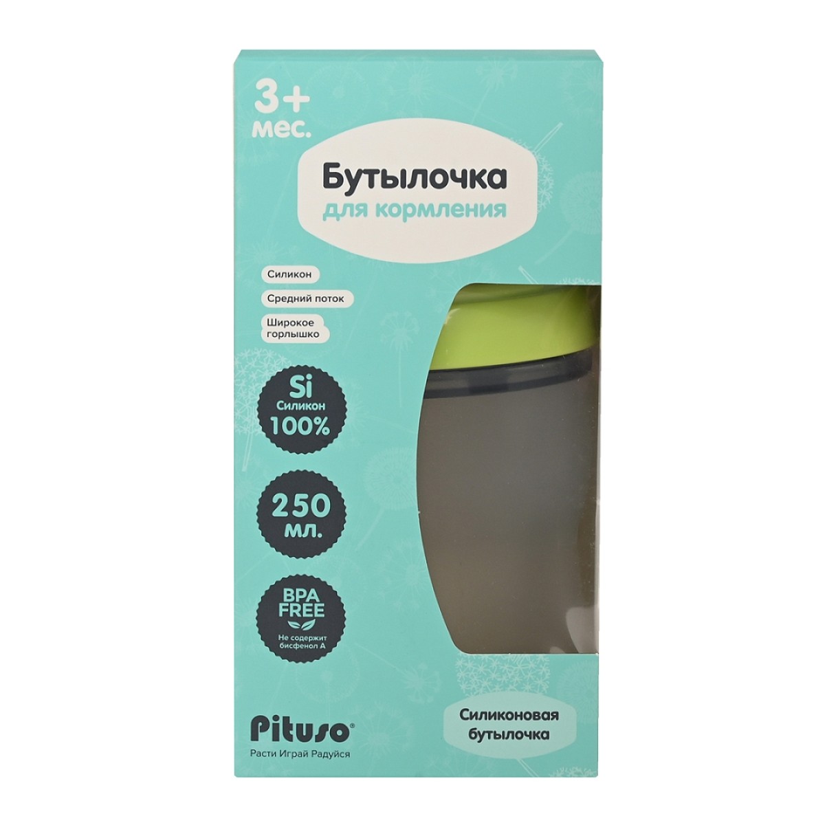 Бутылочка силиконовая Pituso (3+ мес)- естественным образом имитирующая грудное вскармливание.