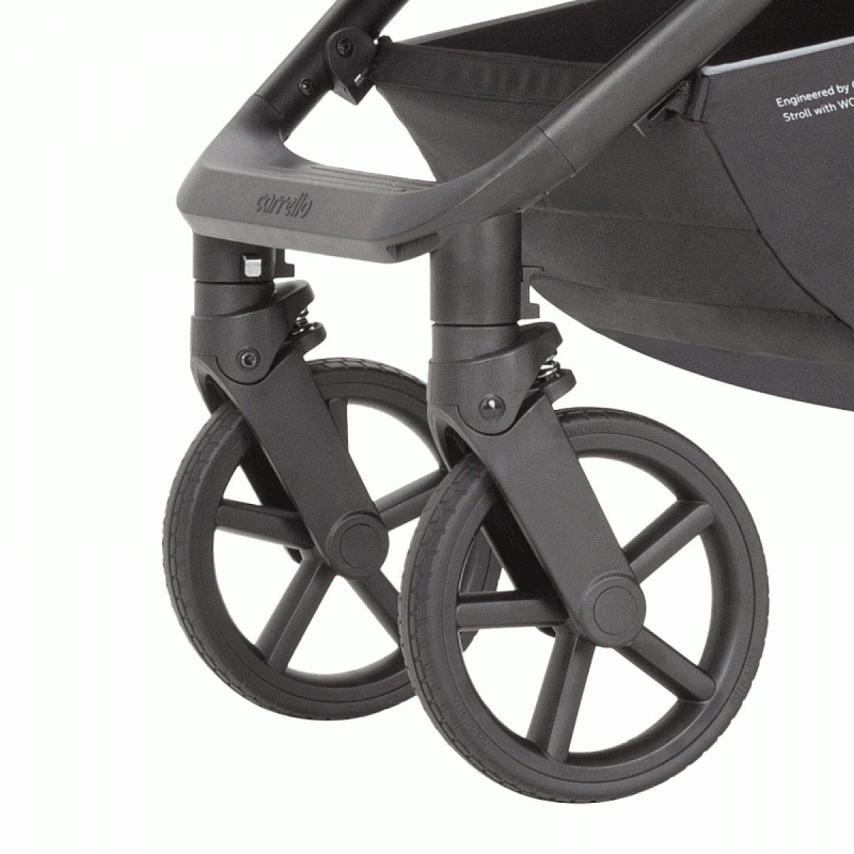 Износостойкие резиновые колёса с цепким протектором, передние колёса теперь оборудованы системой автоматической фиксации в положении "прямо".