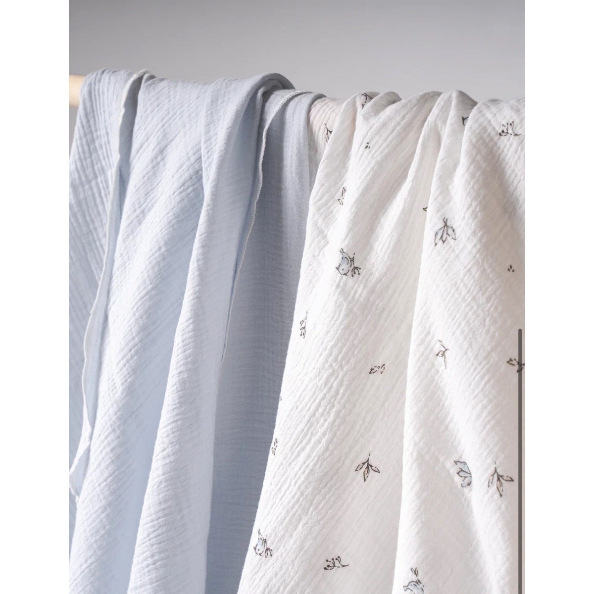 Ткань - премиальный жатый муслин высокого качества. Такая ткань хорошо пропускает воздух, прекрасно впитывает воду и быстро сохнет.