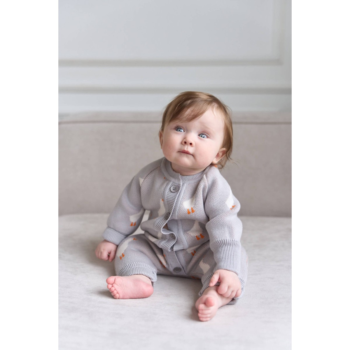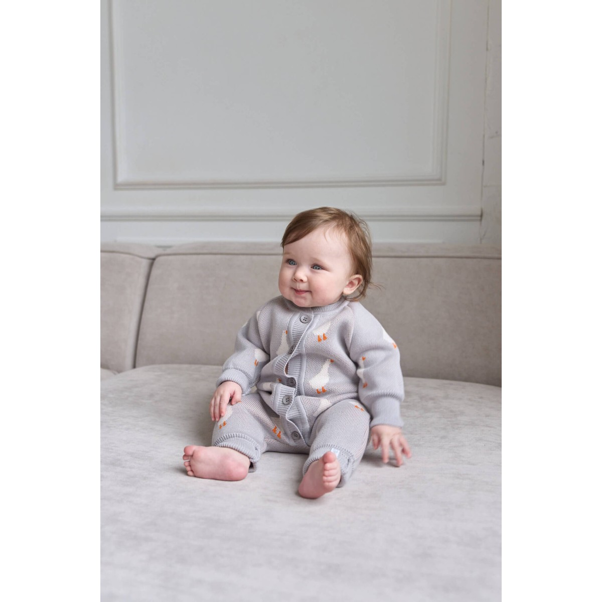 Наш вязаный комбинезон с принтом «гуси» — это воплощение заботы и комфорта для вашего крохи. Мягкая, словно облако, хлопковая пряжа окутает малыша нежностью и подарит ему ощущение тепла и уюта.
