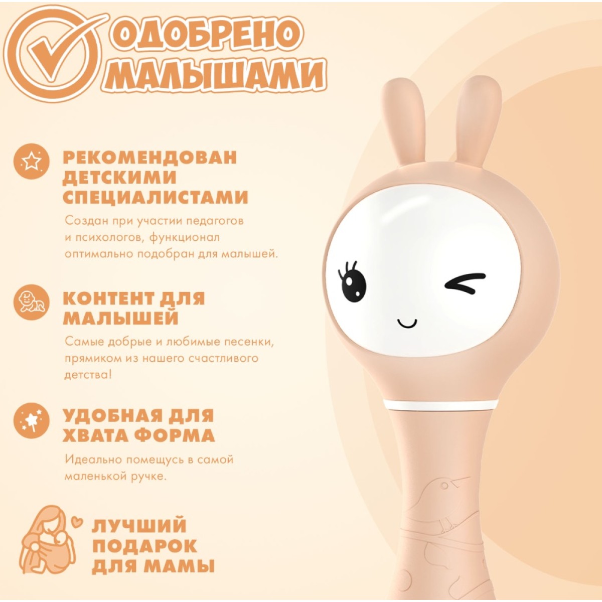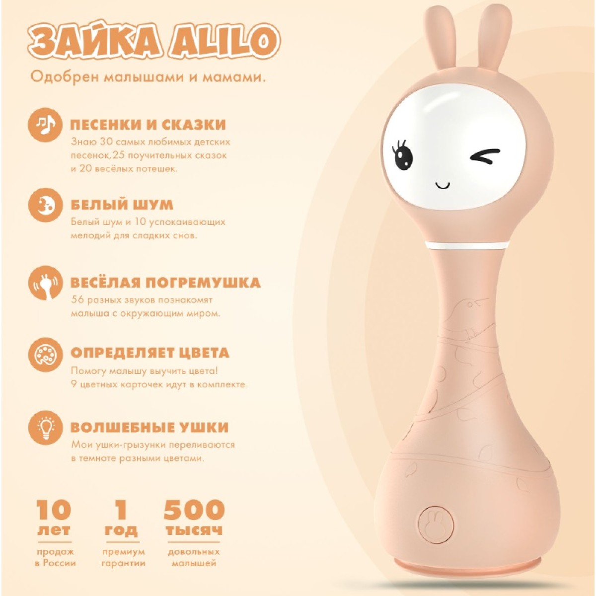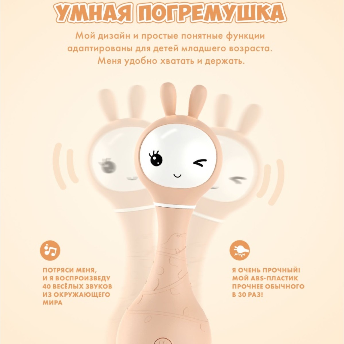 Интерактивная игрушка-погремушка Умный зайка alilo R1 c распознаванием цветов цвет: бежевый 60347